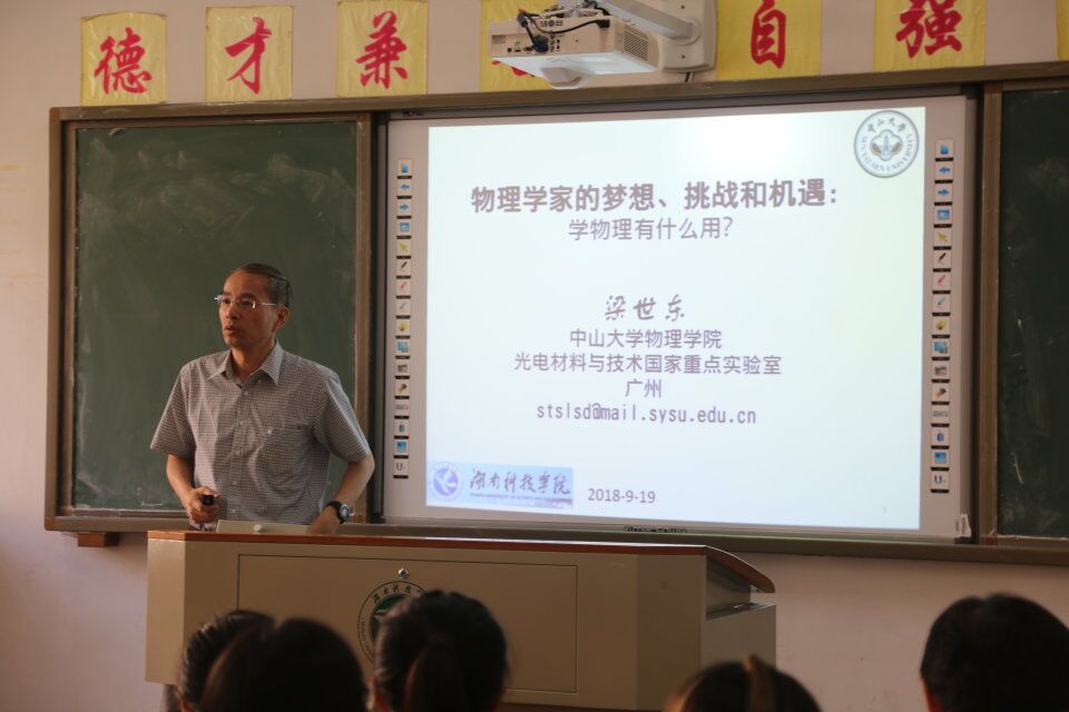 本网讯(通讯员 谢娟 张和)9月19日下午,中山大学物理学院博士生导师、香港大学博士后梁世东教授受邀到世界杯官网理学院开展以“物理学家的梦想、挑战与机遇”为主题的学术讲座。该院院长唐耀平、党总支书记陈旭日、物理学专业教师团队及部分物理学专业学生参加了讲座。