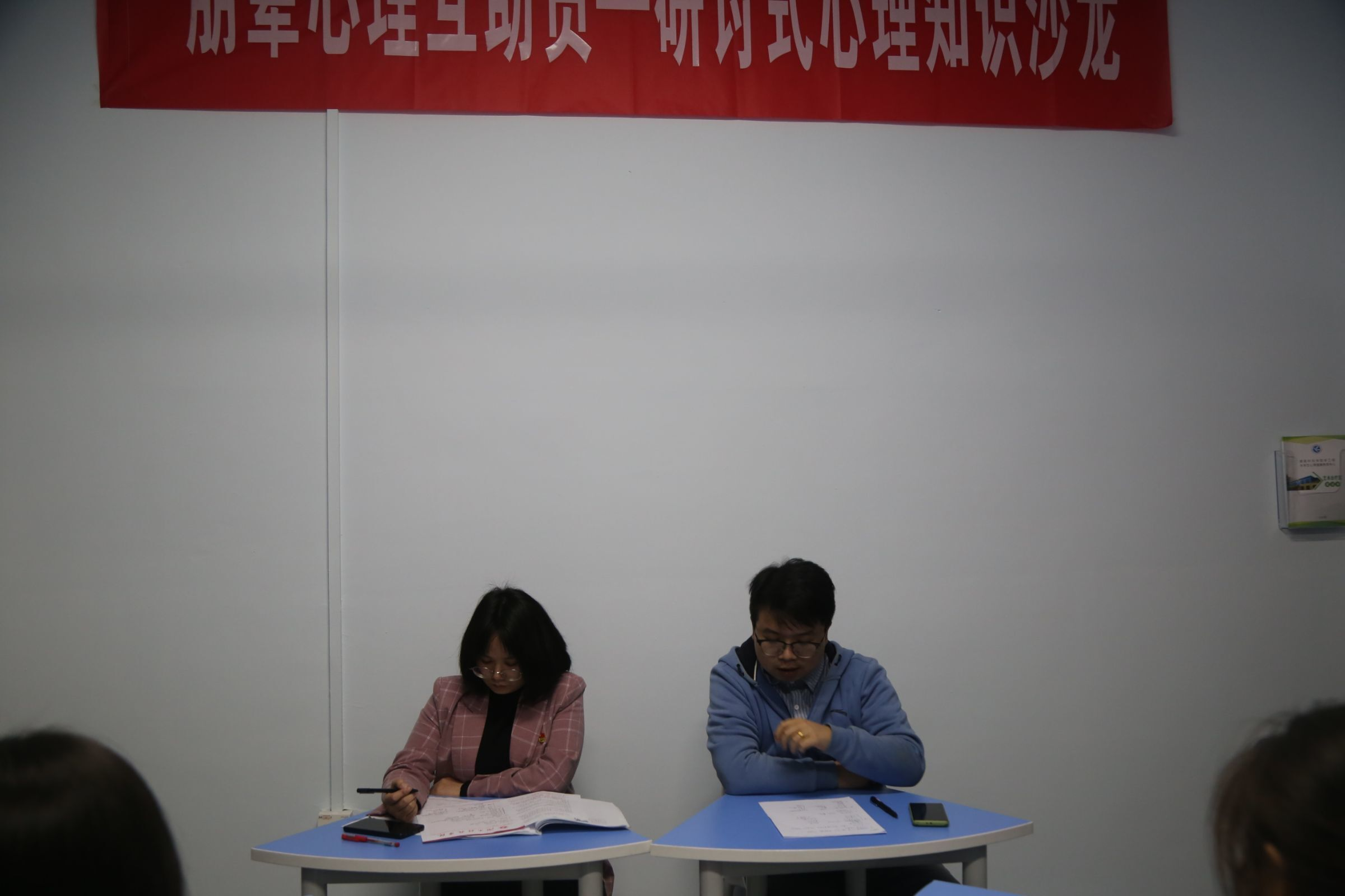 本网讯(记者 赵江南)为了更好地提升朋辈心理互助员的危机识别意识与朋辈帮扶技能,4月6日晚,我院联合马克思主义学院于心理中心二楼团体辅导室开展朋辈心理互助员研讨沙龙,活动由我院心理专干赵江南和马克思主义学院心理专干曹惠如联合主持,两院的心理健康服务部干事与班级心理健康委员参加。