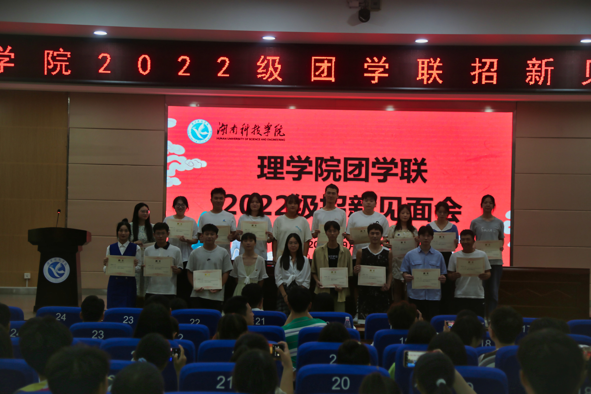 本网讯(通讯员 罗宗爱)9月30日,理学院2022级新生团学联招新大会在潇湘大讲堂举行,党总支副书记副院长欧阳素勤、团总支书记杜俊杰、各年级辅导员出席大会,全体2022级学生、上届学生干部参加,由学生会主席周佳怡主持。