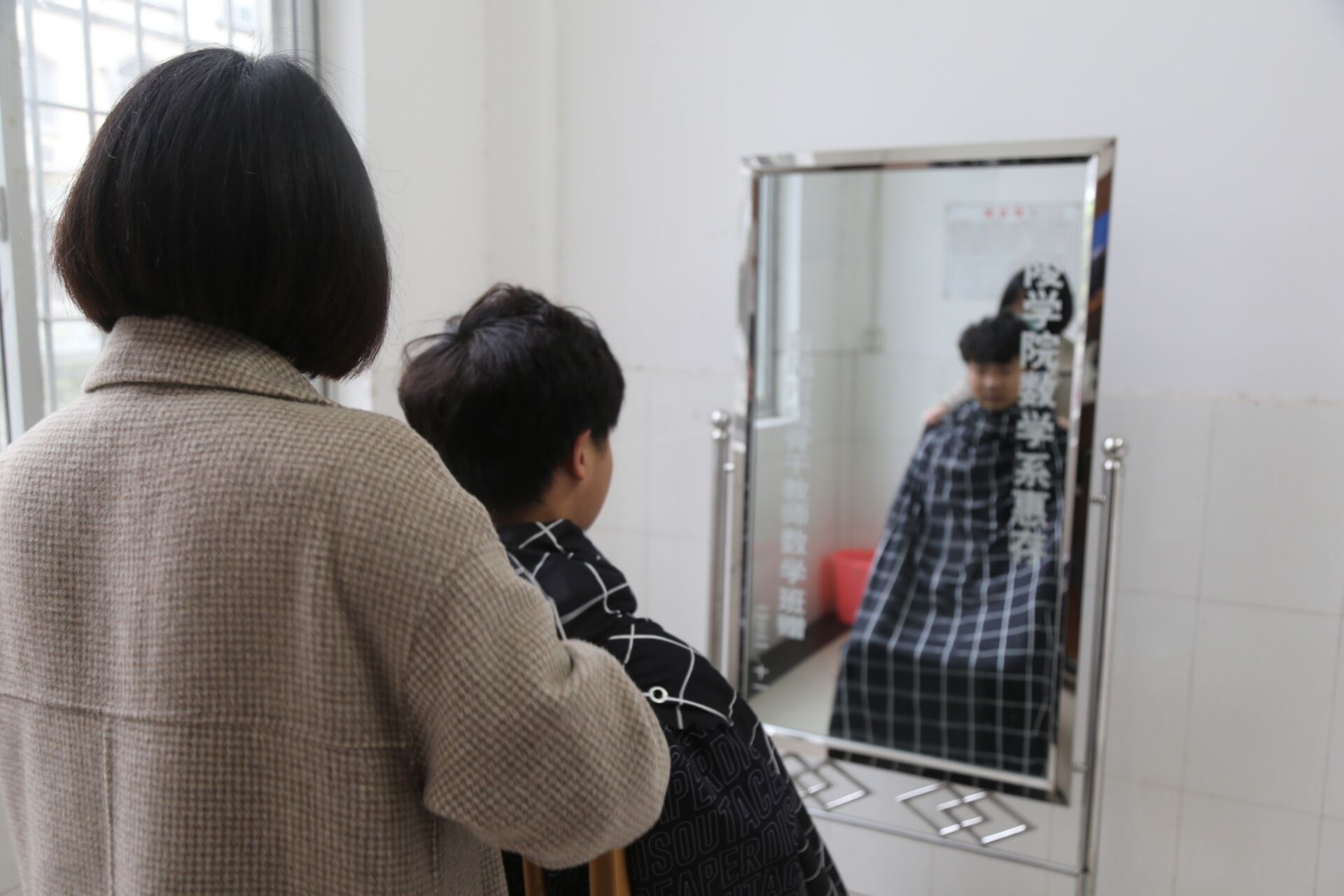 经过几天的认真筹划,一所简单却又温暖的临时理发小屋便成立了。每天中午和晚上,“理发师”志愿者提前对理发点进行消毒,等待线上预约的“顾客”们到来,喷、剪、推、吹,经过反复几次练习,“理发师”的技艺愈发纯熟,“顾客”看着理发后清爽整洁的发型,不仅竖起了大拇指,露出了会心的笑容。每天理发工作结束后,志愿者都会将所用工具细心整理好,把头发等杂物清理干净。理学院青年志愿团团长李满说到:“疫情管控期间,我们这项志愿活动会一直持续,欢迎各个学院的同学们前来理发!”