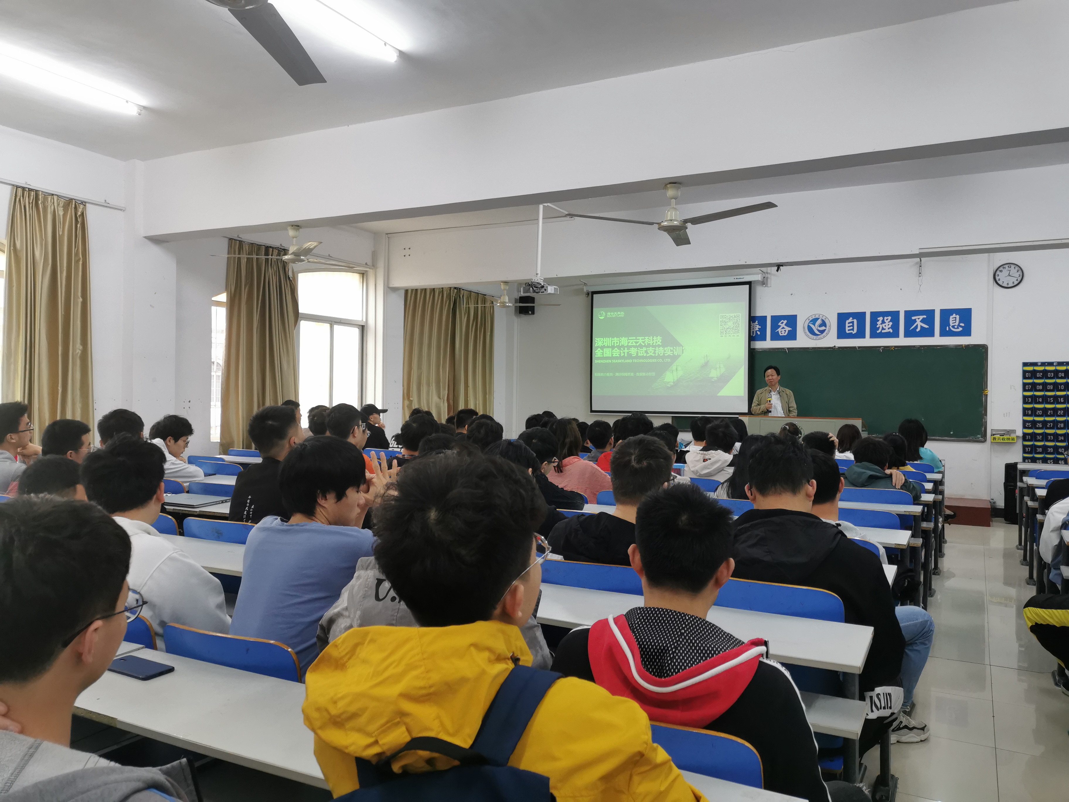 本网讯(通讯员 贺慧蓉)为加强学院与实习企业的合作,提高2018届毕业生的实习质量。4月25日下午,理学院深圳市海云天科技全国会计考试支持实训宣讲会在明理楼举行。院长唐耀平、弘成科技相关负责人、18级辅导员谢美、18级信计专业全体学生参加了本次宣讲会。
