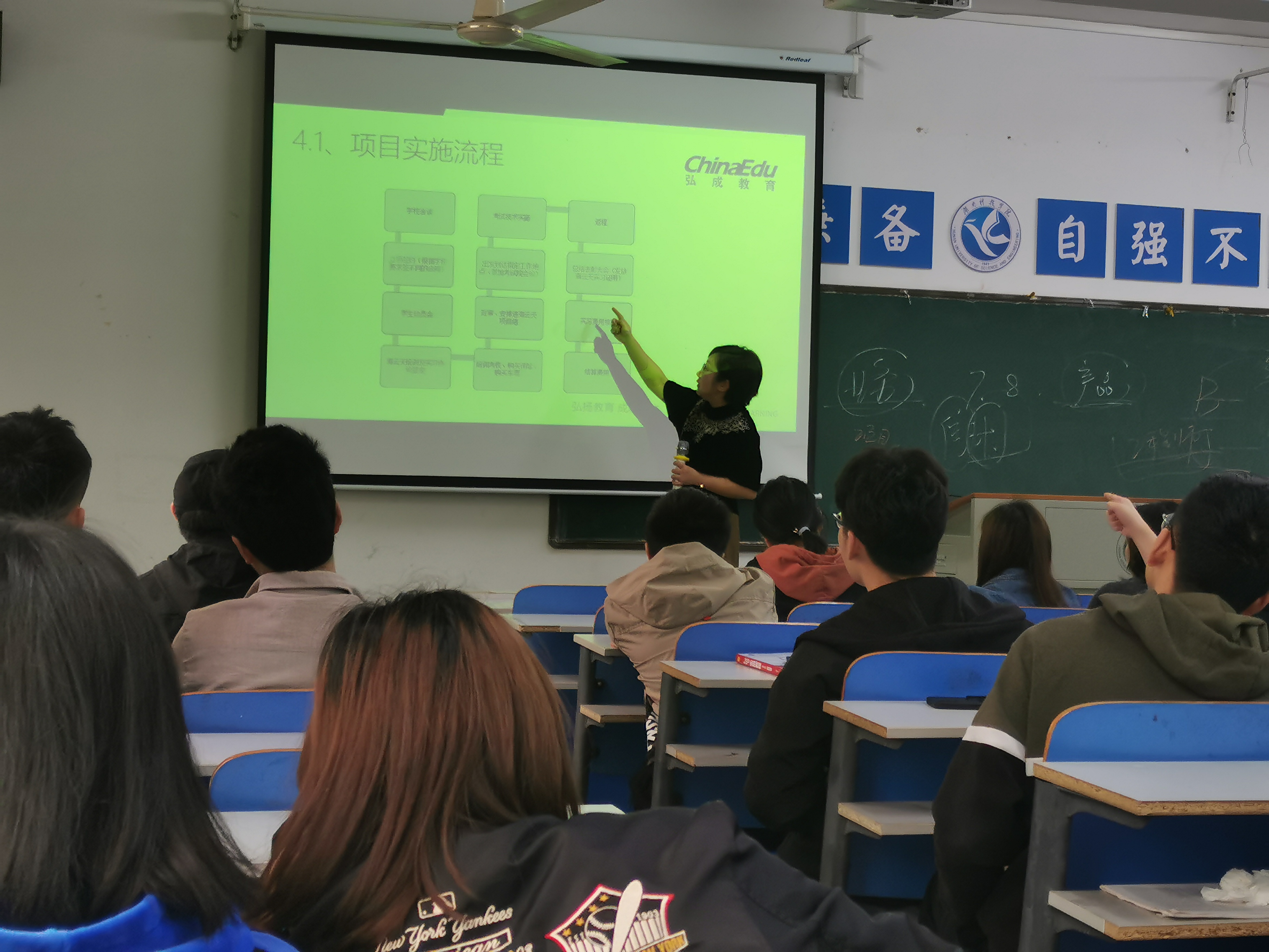 唐耀平院长在本次宣讲会上,对即将参加实习的学生提出四点希望:一、本次实习安排是学院培养方案的必要环节,希望每位同学端正态度,积极参与,认真完成;二、遵守纪律,服从安排,希望同学们最终的实习状态好,实习效果好;三、认真对待实习工作,为进入社会打好基础;四、注意人身财产安全,照顾好自己,希望班干担负起自己的责任,随时与班主任辅导员保持联系。随后,来自弘成科技的徐江玲老师为同学们介绍了海云天公司的行业地位、业务分布、发展历程、业务领域、核心优势、主要客户、社会责任等等。同时,就实习安排也做了详细讲述,包括实习时间、工作内容和注意事项等等。