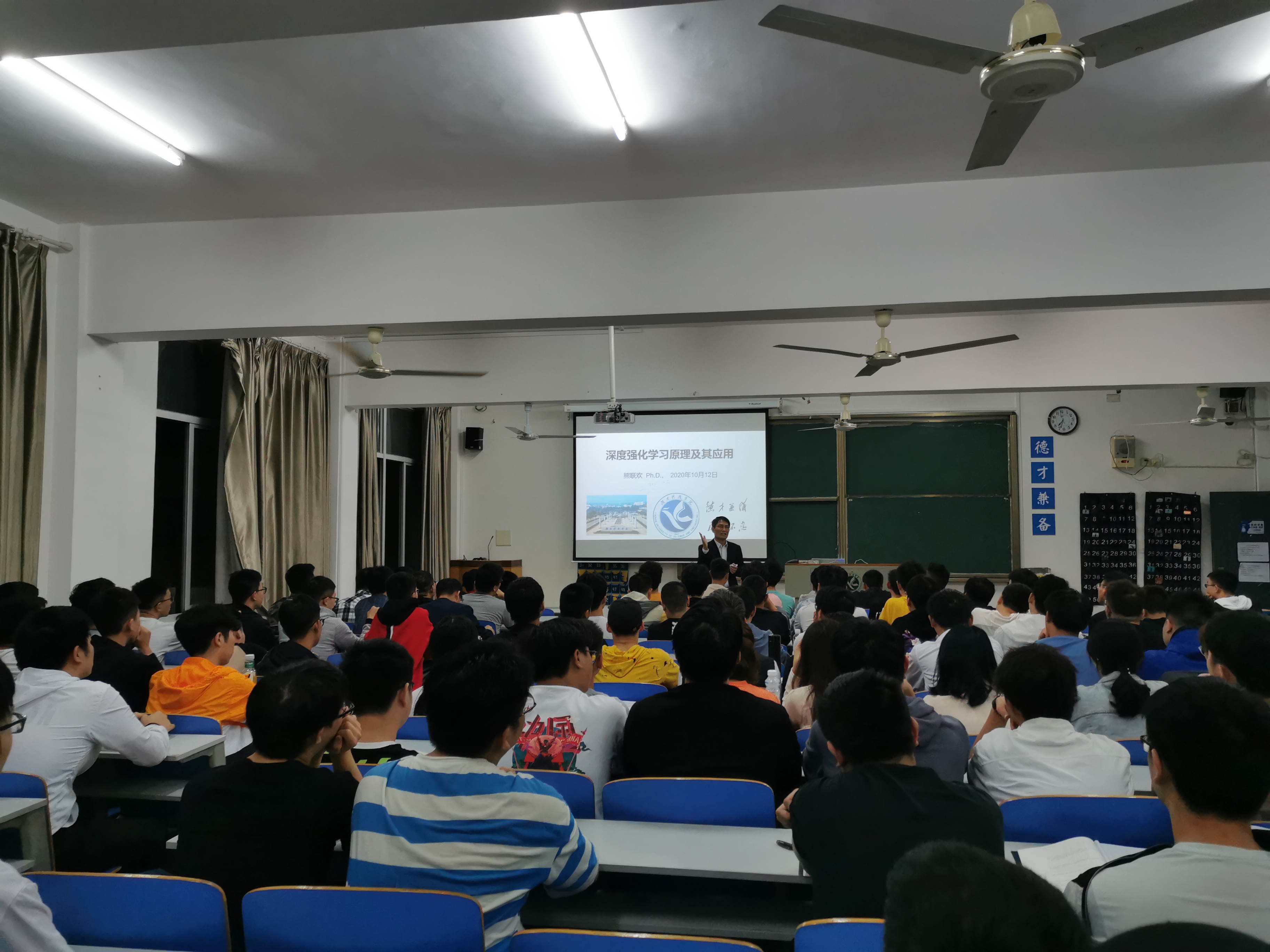 本网讯(通讯员 戴兴鸿)为了让学生能够更好的了解本专业,对自己未来的发展方向有更广阔的视野,10月12日,熊联欢博士应邀为理学院学子做了“深度强化学习原理及其应用”讲座报告。熊联欢博士是世界杯官网优秀校友,曾任职华为技术有限公司多媒体业务部和公司研究部,有着深厚的理论基础和丰富的项目管理经验。讲座由副院长周立平主持。