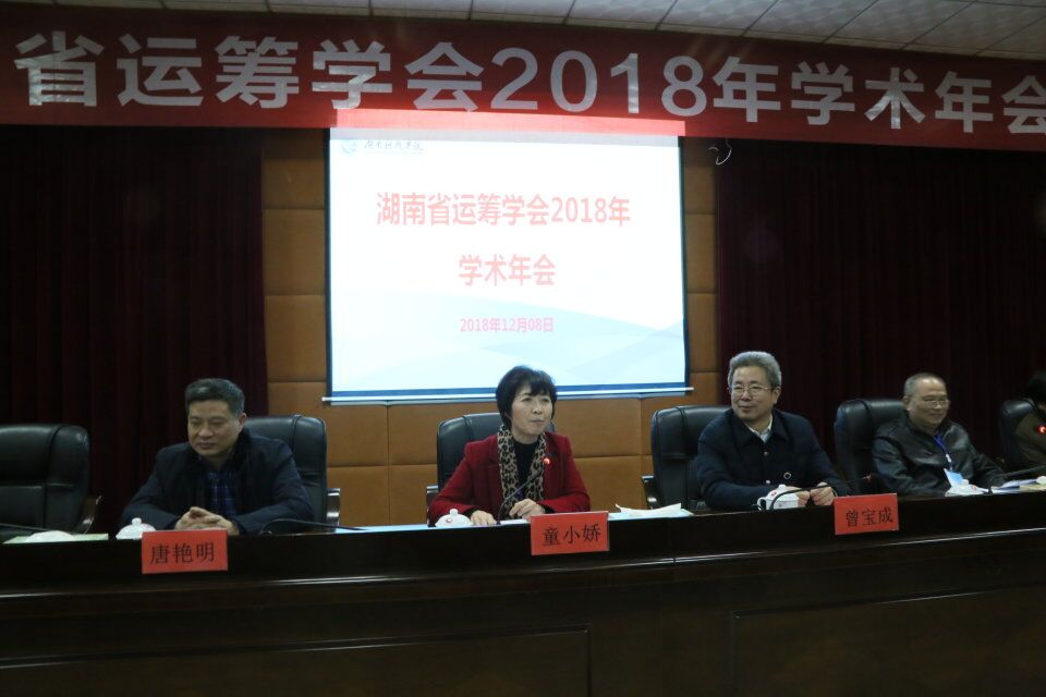 本网讯(通讯员谢娟张和)12月8日,由湖南省运筹学会主办、2026世界杯官方合作网站理学院承办的“湖南省运筹学会2018年学术年会”于2026世界杯官方合作网站行政楼八楼会议室隆重召开。参加此次会议的有学会理事会成员和省内外各高校相关学科教师和学生代表近100人。