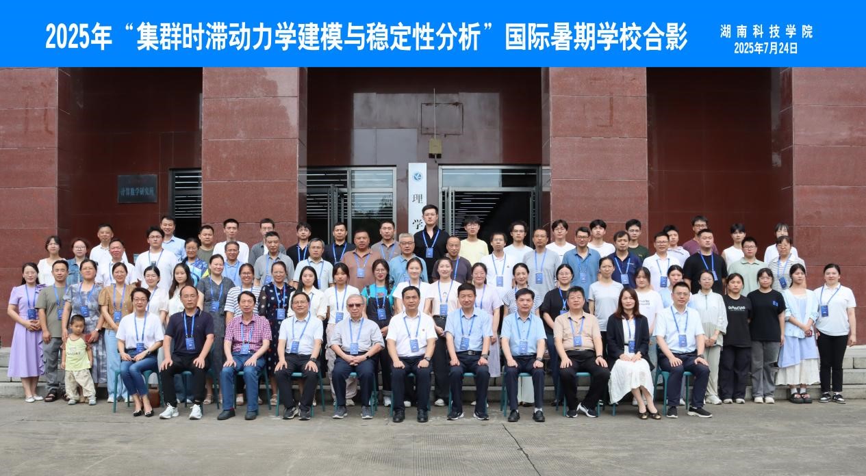 讲习班分两阶段有序推进。第一阶段为线上课程讲座,于7月13日-22日圆满落幕。吴建宏院士(York University, Canada)、阮士贵教授(University of Miami,USA)、邹幸福教授(University of Western Ontario, Canada)、赵晓强教授(Memorial University of Newfoundland, Canada)等国际知名专家通过在线前沿课程讲座,系统讲授时滞微分方程稳定性与建模核心理论,介绍时滞动态模型最新研究进展,吸引了国内外100余位专家师生在线参与,搭建起跨地域学术交流平台。第二阶段为国际暑期学校(7月24日-31日),通过小班化教学、互动研讨聚焦“集群时滞动力学建模与稳定性分析”。特邀庾建设教授(广州大学)、李继彬教授(昆明理工大学)、张伟年教授(四川大学)、韩茂安教授(浙江师范大学)、黄立宏教授(长沙学院)、马如云教授(西安电子科技大学)、张宏坤教授(大湾区大学)、申建华教授(杭州师范大学)、陈兴武教授(四川大学)、李洪旭教授(四川大学)、周展教授(广州大学)、郭志明教授(广州大学)、郑波教授(广州大学)、夏永辉教授(佛山大学)、刘炳文教授(嘉兴大学)、唐先华教授(中南大学)、陈海波教授(中南大学)、陈和柏教授(中南大学)、黄建华教授(国防科技大学)、刘易成教授(国防科技大学)、王晓教授(国防科技大学)、袁朝晖教授(湖南大学)、郭振远教授(湖南大学)、陈爱永教授(湖南第一师范学院)等著名专家作专场授课、学术报告与现场指导交流,进一步拓宽学员的学术视野。
