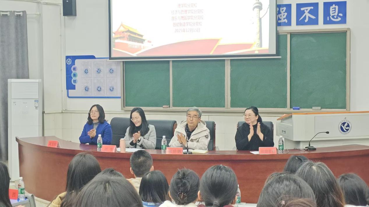 本网讯(通讯员 黄继诚)为深入学习贯彻党的理论知识,夯实入党积极分子的思想根基,培育合格的党组织后备力量。2025年12月15日晚19:10,理学院联合经济管理学院、音乐与舞蹈学院及智能制造学院举办的2025年下期入党积极分子培训班开班仪式,在日新楼212教室顺利举行。其中有理学院党总支书记刘华、音乐与舞蹈学院党总支书记陈玉皎、经济管理学院党总支书记袁岳驷等院系领导出席,理学院辅导员康平、音乐与舞蹈学院冯富生、经济管理学院辅导员姚俊源与黄胜及第四组129名入党积极分子参与,本次培训由理学院党总支副书记欧阳素勤担任主持。