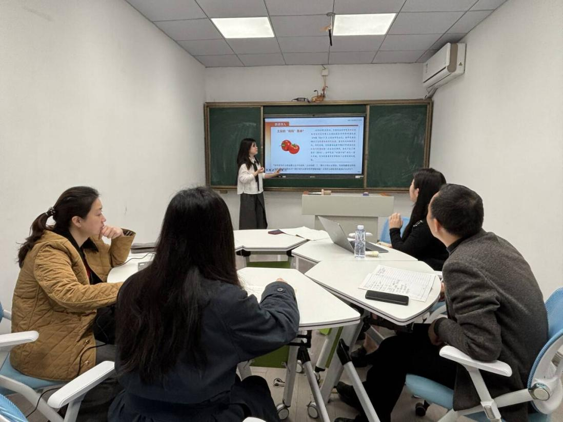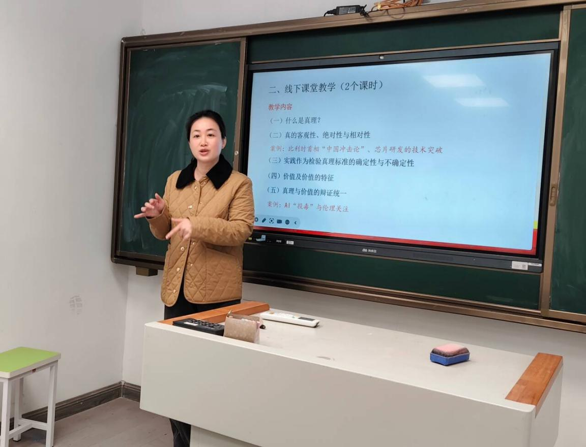随后,胡赟老师就《马克思主义基本原理》课程第二章第二节《真理与价值》进行教学设计展示。胡赟老师立足线上线下混合式教学模式,以课前学生思想困惑调研为基础,采用案例分析教学法,紧扣“比利时首相‘中国冲击论’”“中国芯片研发技术突破”“315曝光AI大模型被投毒”等热点案例展开教学设计,从课堂导入、问题链条构建、案例深度解析、育人目标落地等方面完整呈现教学思路,充分体现OBE理念与问题导向。参会领导与教师围绕案例典型性、教学方法创新、价值引领凸显等方面提出完善建议,群策群力优化教学实施路径。