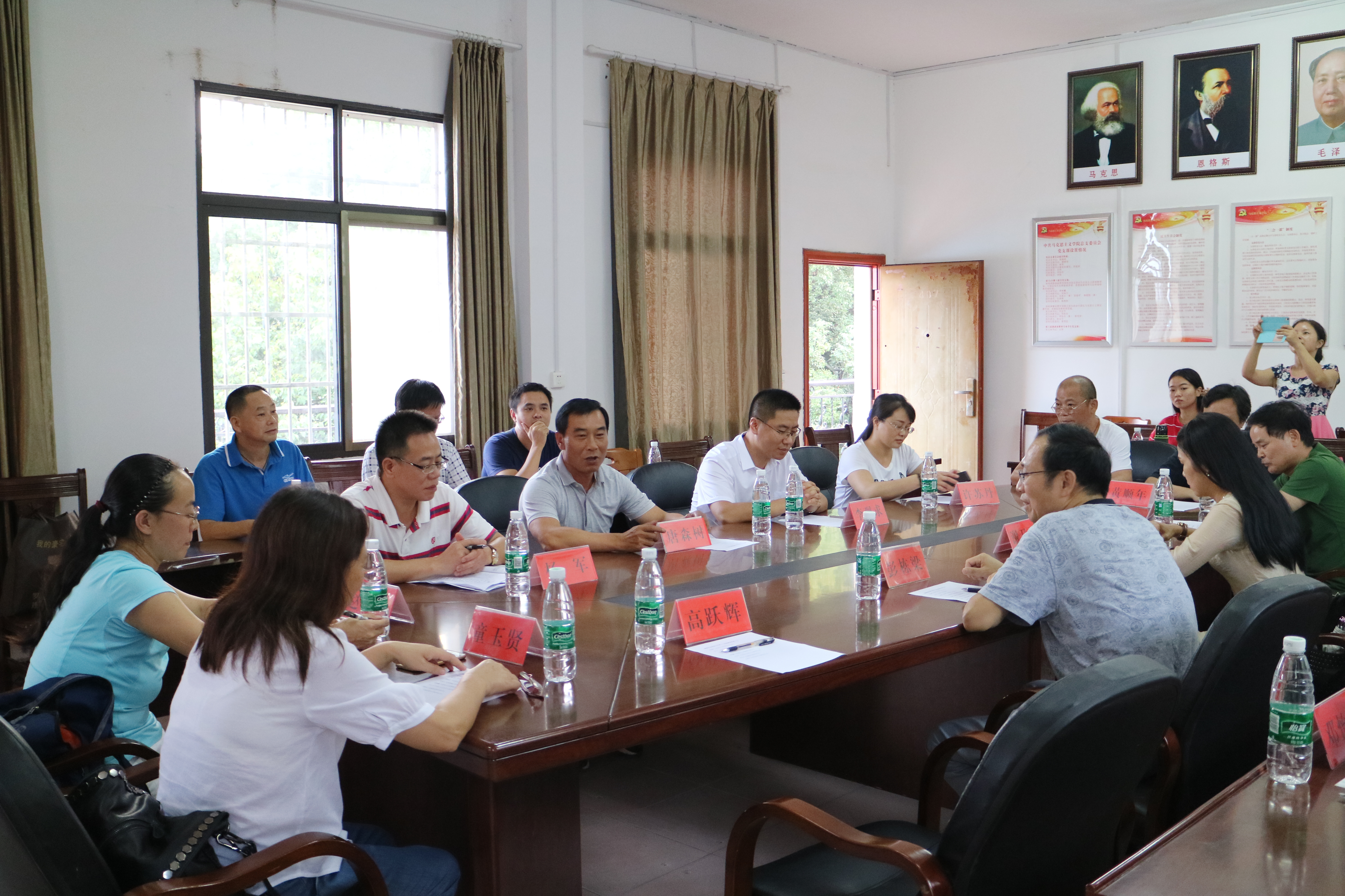 本网讯 (通讯员全伟贺茶香)9月22日下午,湖南工程学院思想政治理论课教学部彭栋梁主任一行来世界杯官网马克思主义学院考察交流。该院党总支书记唐森树、副院长杨军、副书记李观求及教学部主任参加交流座谈会。