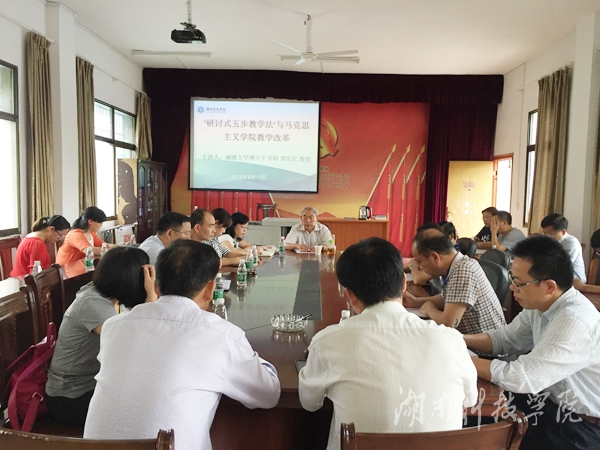 本网讯(通讯员 李艳)6月16日下午,湘潭大学博士生导师、全国优秀教师郭汉民教授应邀来校与马克思主义学院全体教师就如何推进教学改革进行面对面座谈。