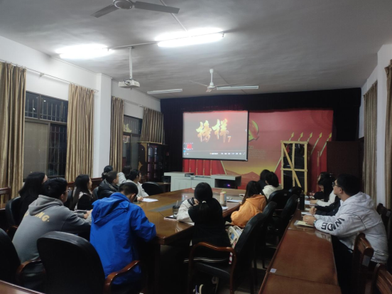本网讯(记者邹琳)为深入学习贯彻习近平新时代中国特色社会主义思想和党的二十大精神,学习党的二十大代表的先进事迹,汲取榜样力量。3月27日晚,马克思主义学院学生党支部组织全体党员在鹤鸣楼405观看专题节目《榜样7》。