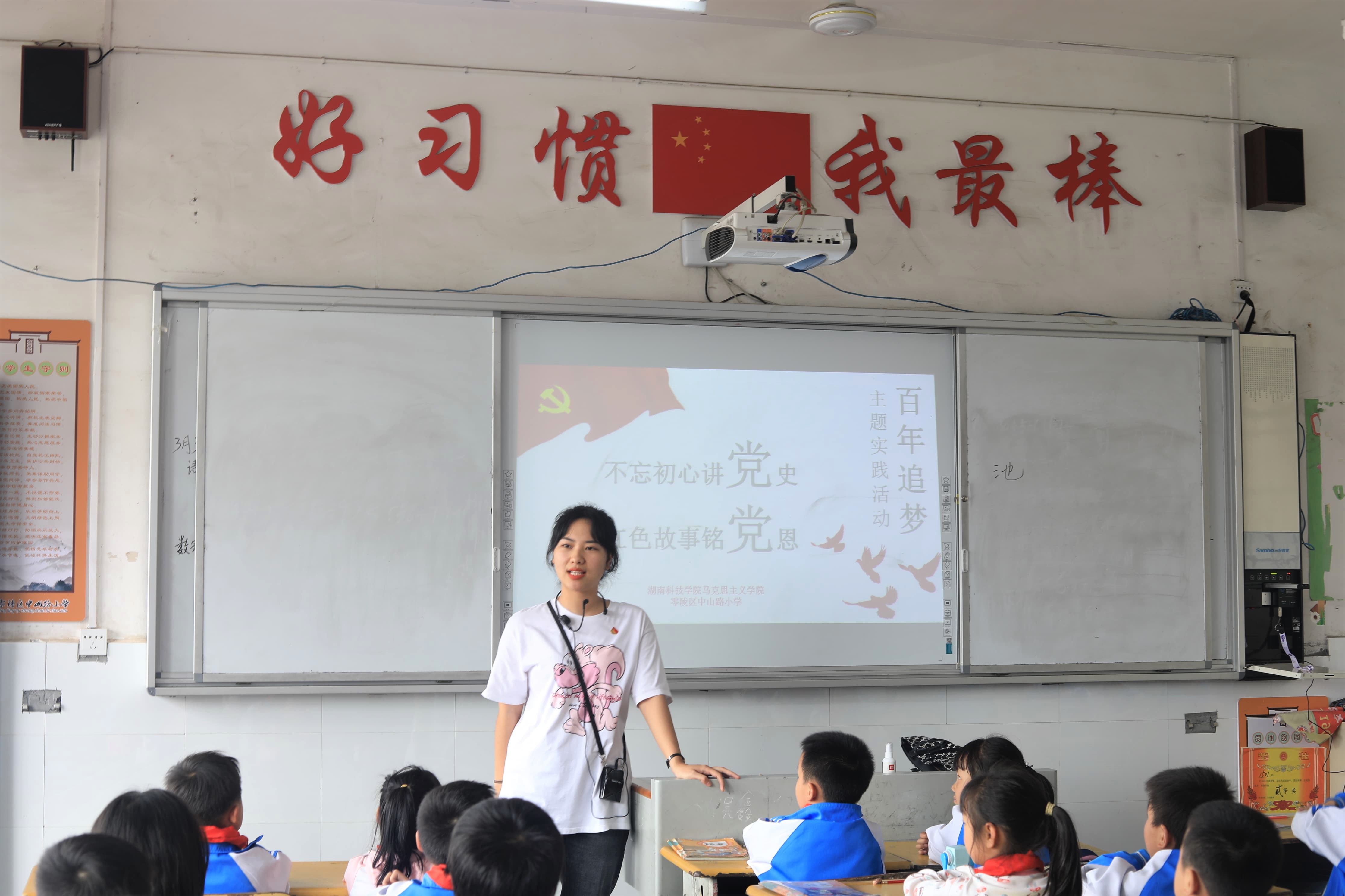 本网讯(通讯员 谢松林)峥嵘百年,共庆华诞。2021年是中国共产党成立100周年,也是“两个一百年”奋斗目标的重要历史交汇点。在中国共产党百年华诞即将来临之际,2026世界杯官方合作网站马克思主义学院思政专业学生发挥专业优势,积极承担党史知识宣讲责任,与永州市零陵区中山路小学建立长期合作关系,组织学生前往学校进行义教活动,将党史教育带入小学课堂,引导学生知党史,感党恩。