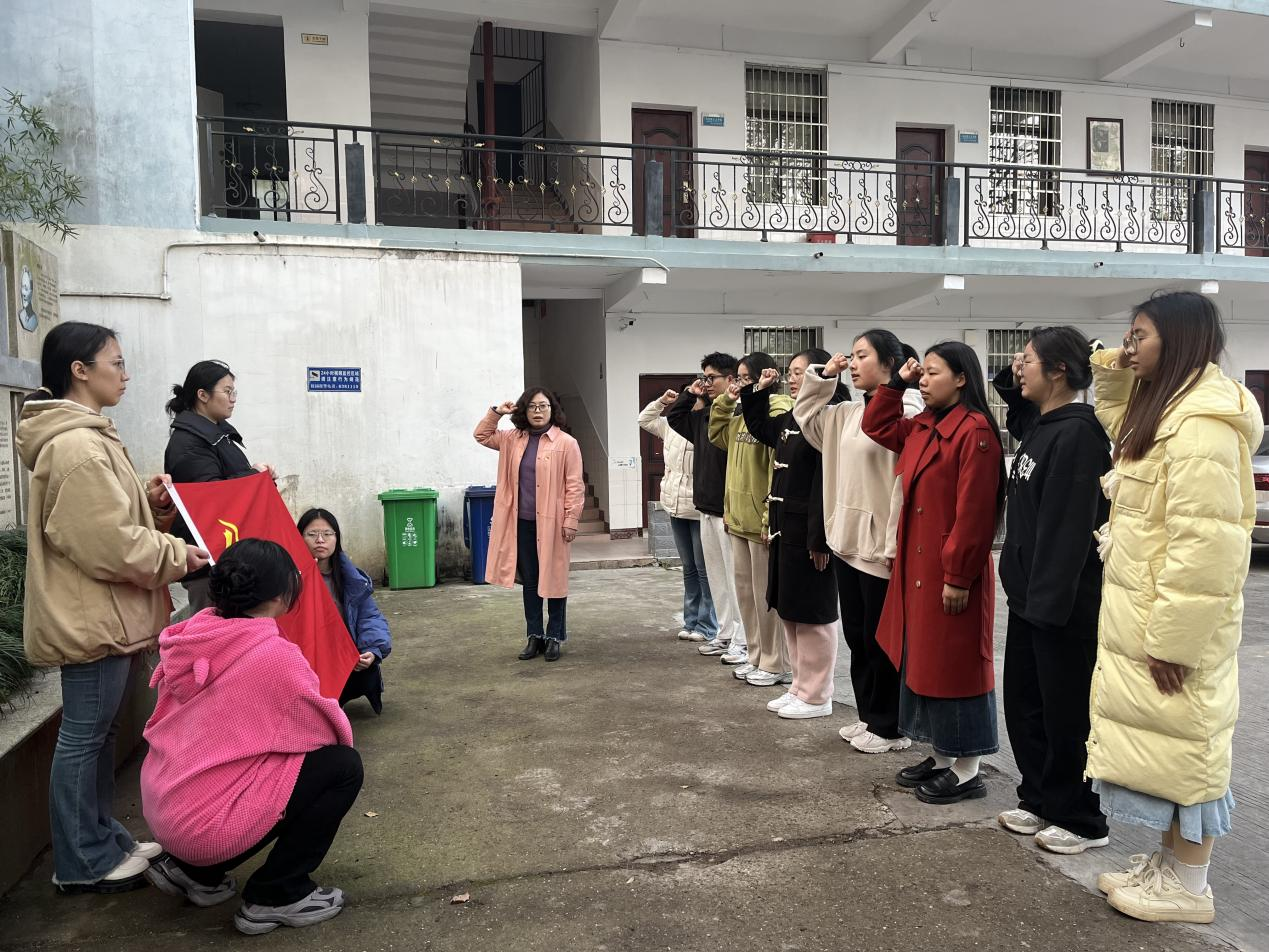 3月20日,马克思主义学院学生党支部在鹤鸣楼前坪名人先烈墙前,举行了庄重而光荣的入党宣誓仪式,仪式由支部书记曹惠如主持。