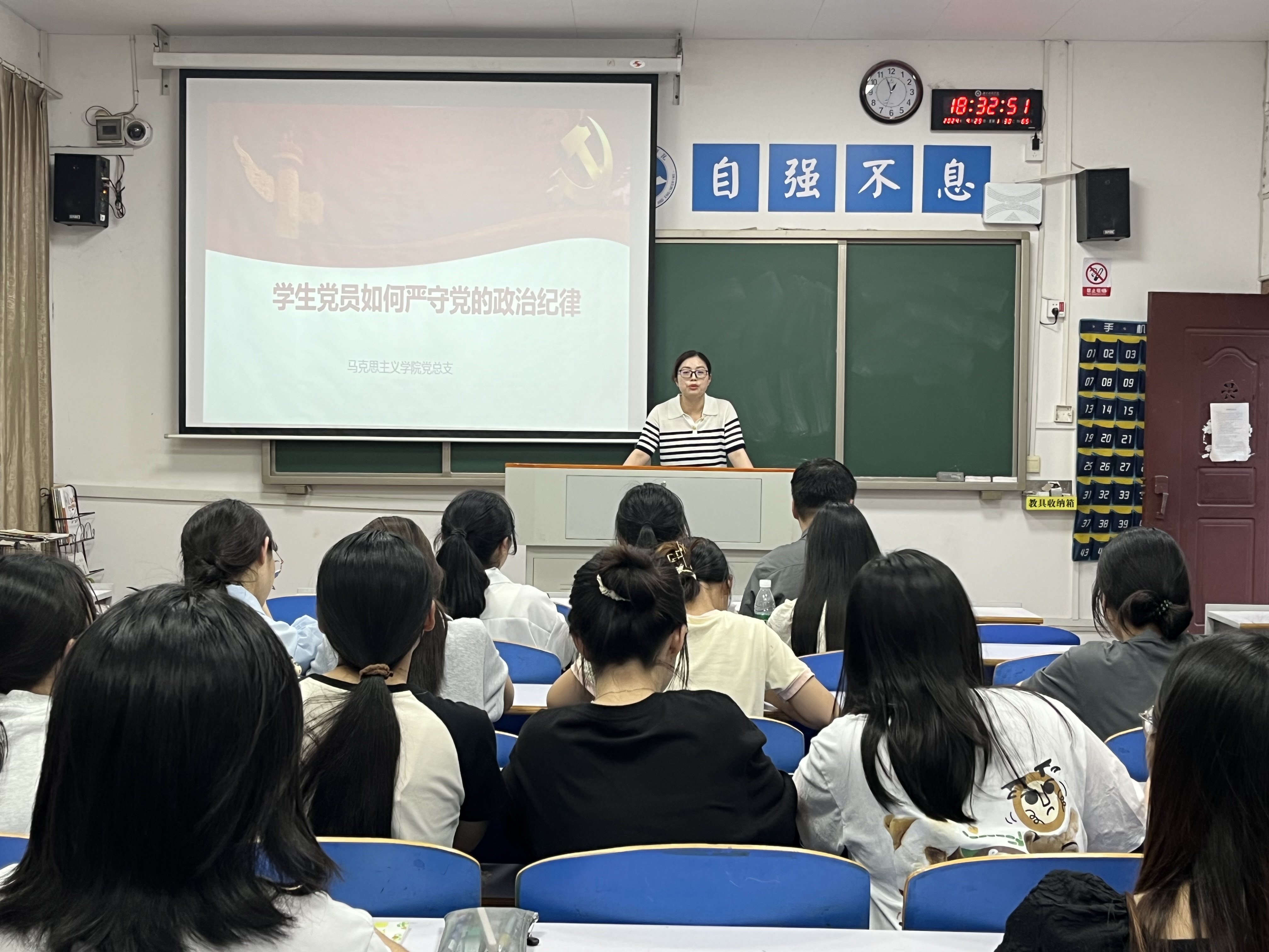本网讯(记者 杨子易)4月29日,马克思主义学院学生党支部再次开展集中学习修订后的《中国共产党纪律处分条例》(以下简称《条例》),党总支书记陈玉皎为全体学生党员讲授《学生党员如何严守党的政治纪律》为题的微党课。