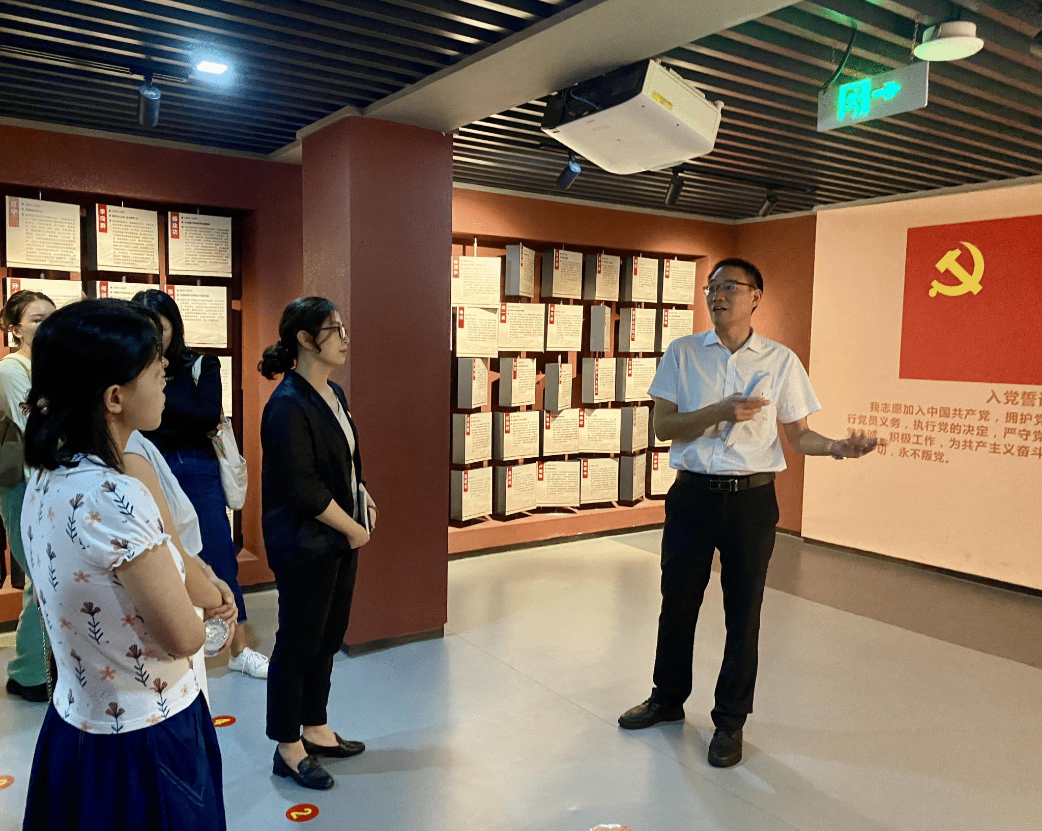 在展厅的最后部分,教工第二党支部书记何志平为全体党员讲授了题为《纪律严明是党的光荣传统与独特优势》的现场党课。何志平为大家讲解了《中国共产党纪律处分条例》的发展历史,通过深刻剖析“谢步升案”等党史上的典型党纪案例,阐明纪律严明是党的优良传统和政治优势,警示全体党员同志定要不忘入党初心,严守党纪国法。