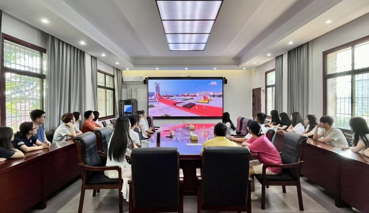 (通讯员:吴志伟)为引导广大师生铭记历史、缅怀先烈、珍爱和平、开创未来,进一步激发爱国热情与民族责任感,9月3日上午9时,马克思主义学院组织师生在鹤鸣楼405会议室、406教室集中收看纪念中国人民抗日战争暨世界反法西斯战争胜利80周年大会直播盛况。学院党总支书记高丹、副院长唐立及部分师生代表参加活动。
