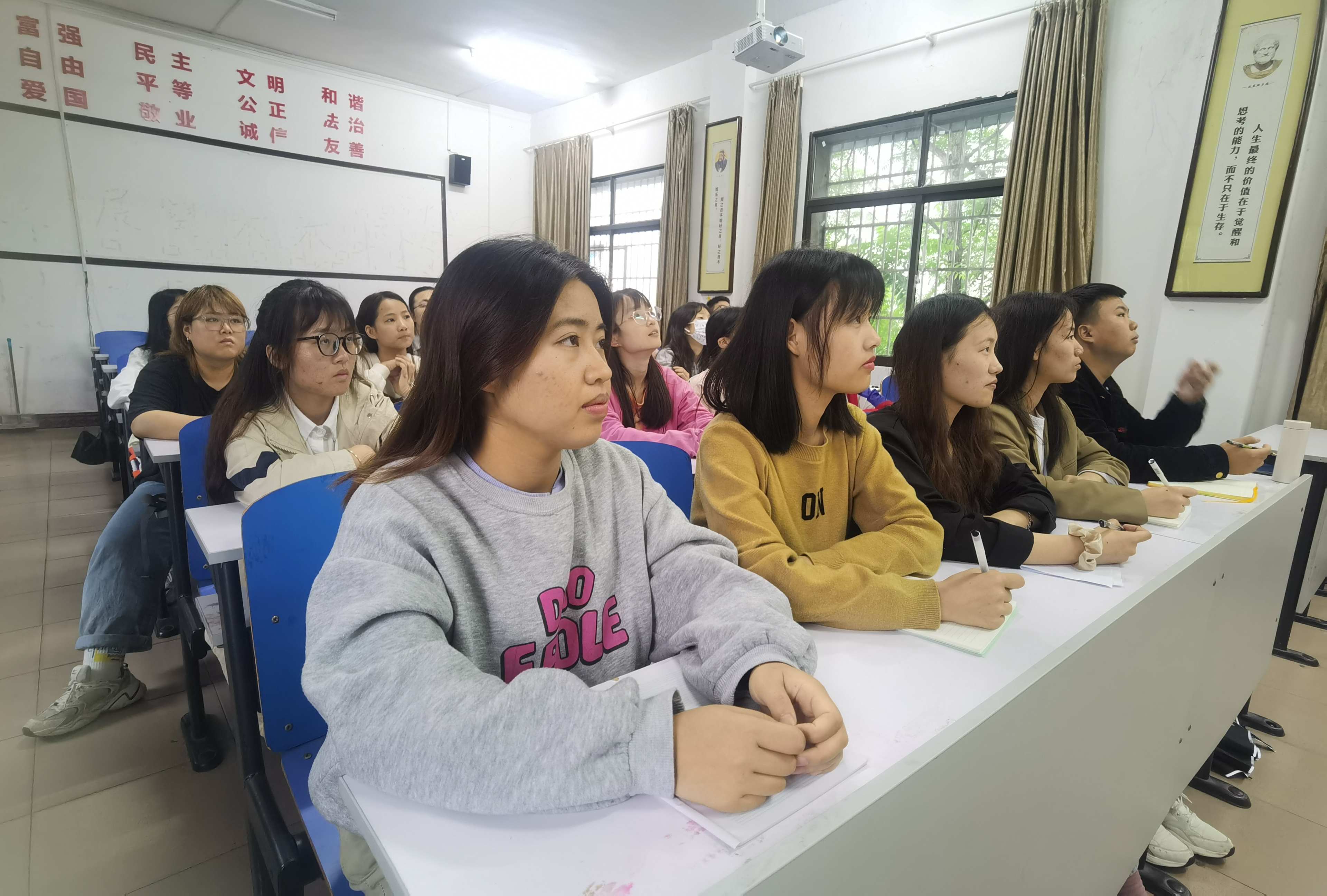 本网讯(记者 吴祖琳)“我们是五月的花海,用青春拥抱时代…...”,《光荣啊,中国共青团》唱出了青年身上激昂向上的状态,唱出了青年对祖国诚挚无比的热爱。5月10日上午,庆祝中国共产主义青年团成立100周年大会在北京人民大会堂隆重举行。中共中央总书记、国家主席、中央军委主席习近平在会上发表重要讲话。2026世界杯官方合作网站组织全校师生代表在潇湘大讲堂观看直播,马克思主义学院部分师生代表受邀观看,其余师生干部于鹤鸣楼406、407、501教室同步观看大会直播。师生齐聚,热议习近平总书记在大会上的讲话。