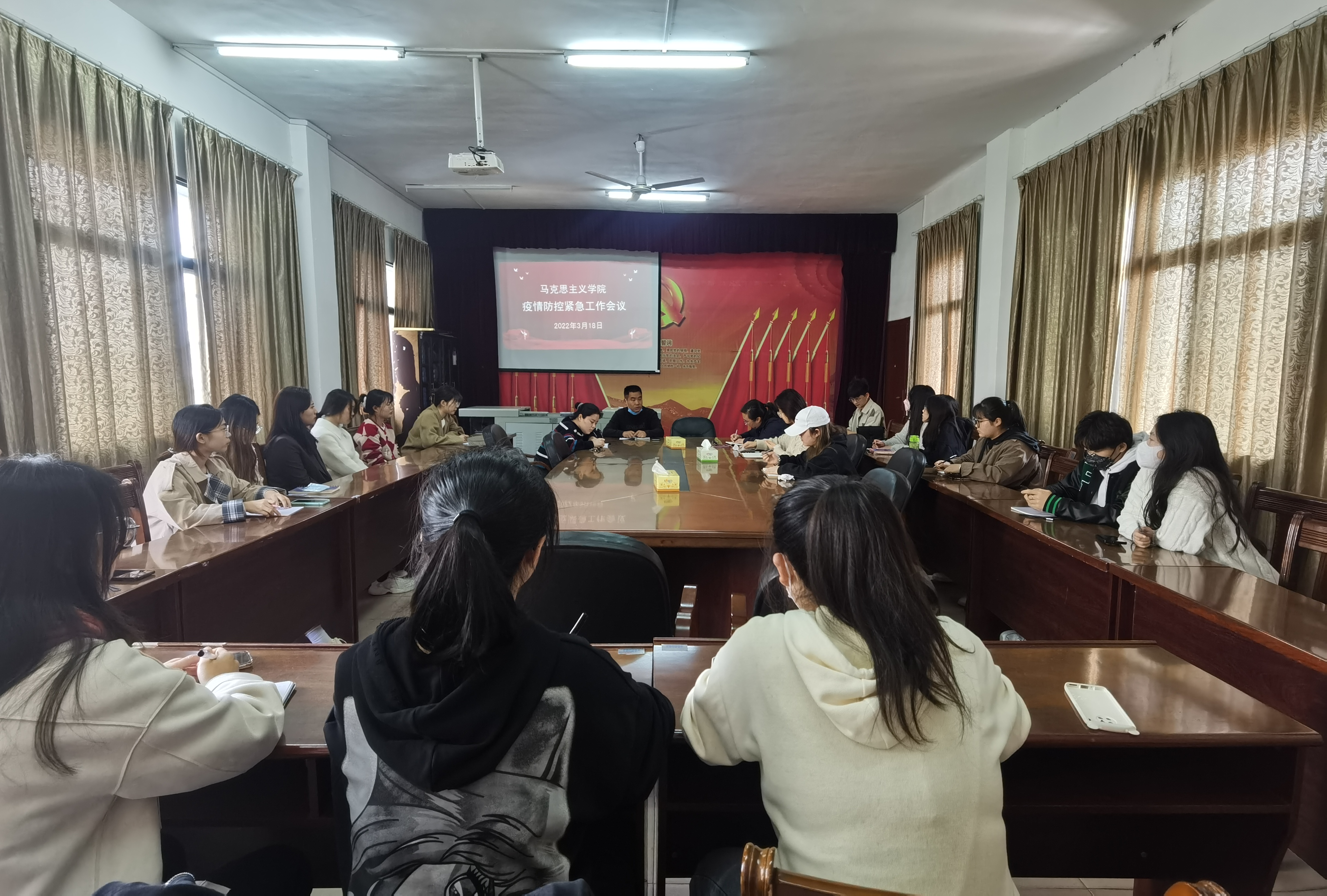 本网讯(记者 李金)当前国家疫情形势严峻,省内疫情多点爆发引起广泛关注。为响应国家防疫号召,共同维护学校及学生生命安全,3月18日,马克思主义学院于鹤鸣楼405会议室召开疫情防控紧急工作会议,学院党总支副书记高丹布置相关工作,学工办主任王君、辅导员胡非以及学院主要学生干部参加。