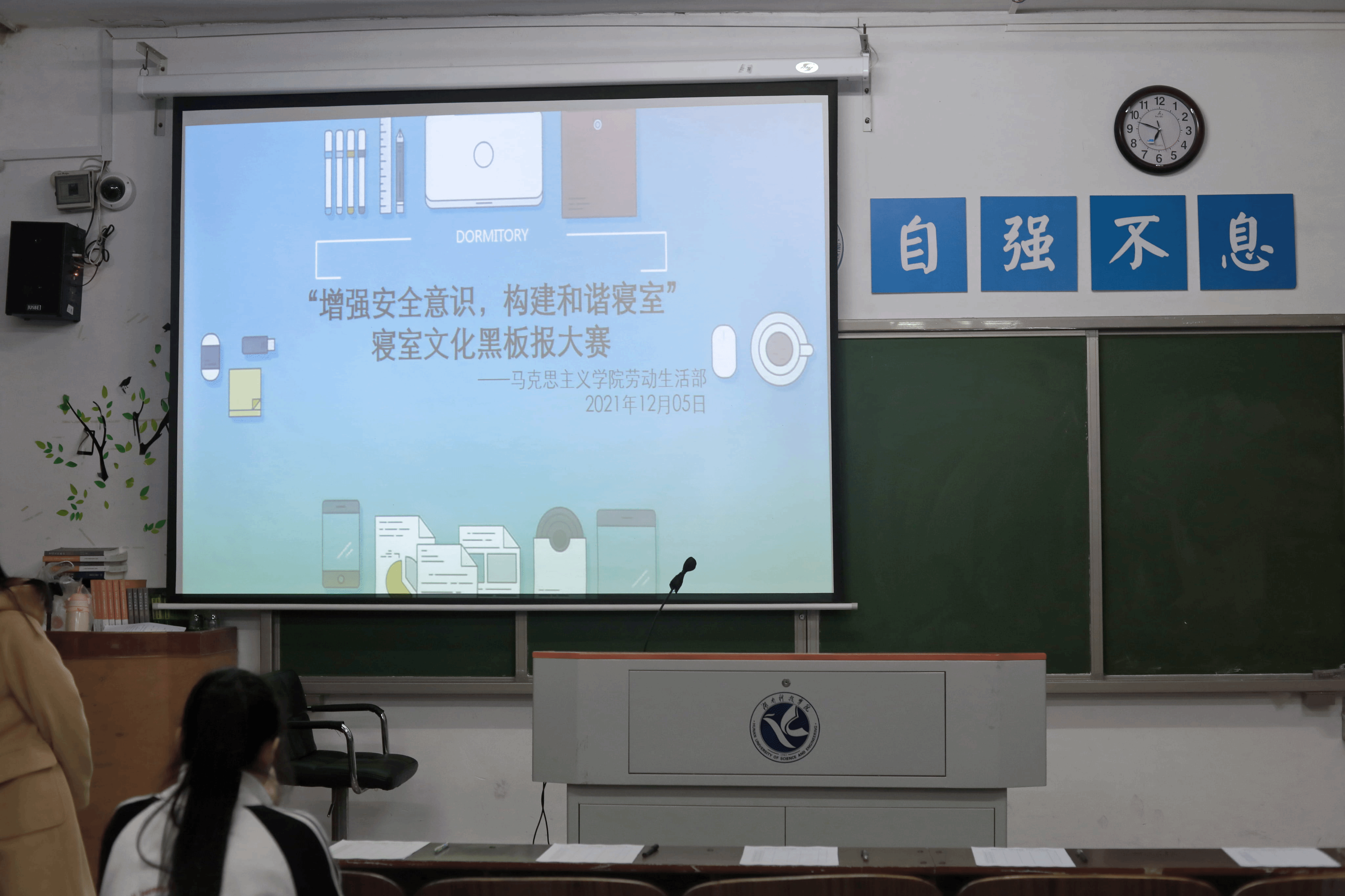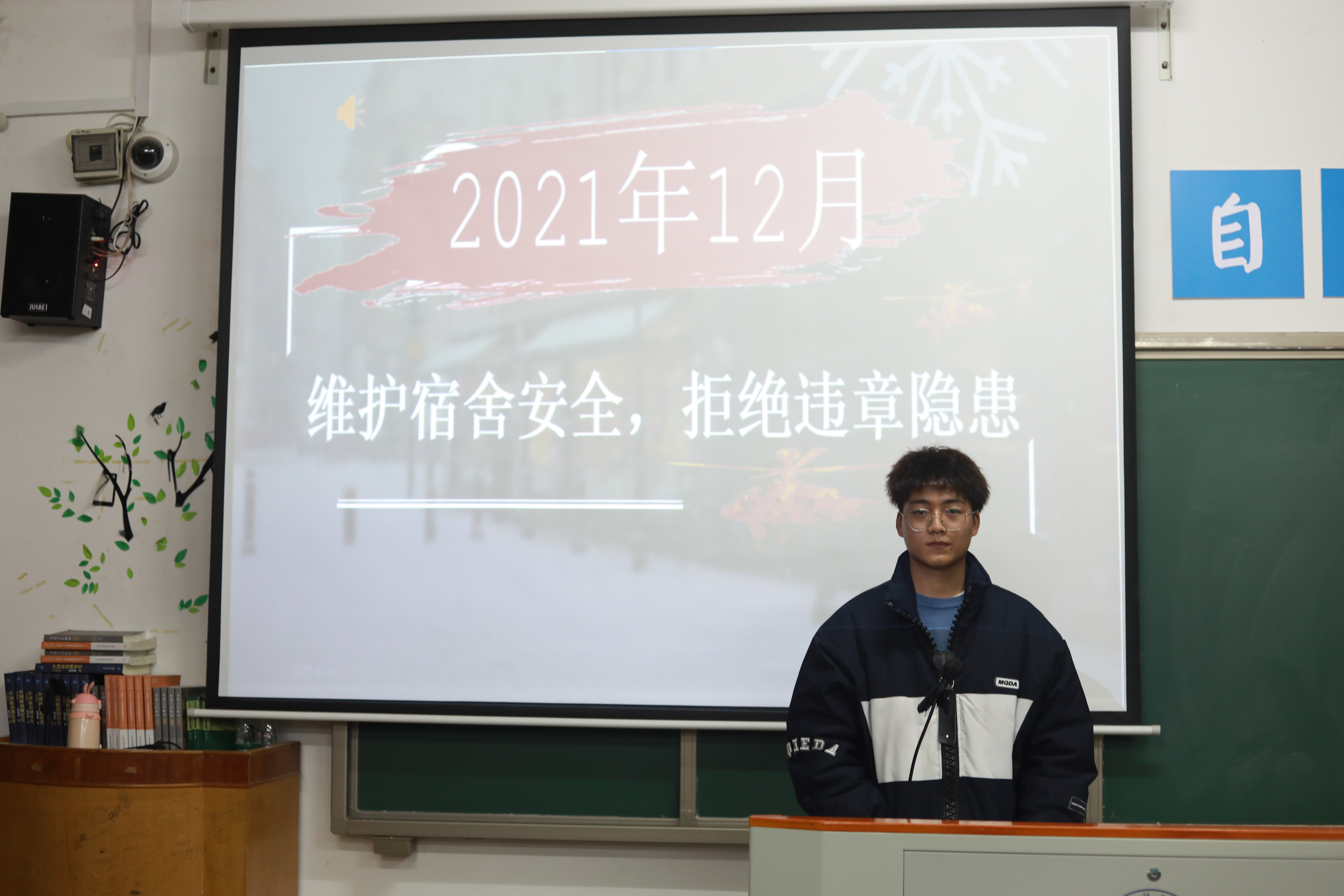 我院首先各班级对同学们进行安全教育宣传,举行“宿舍安全教育”宣讲活动并下寝普及宿舍安全知识,就安全隐患等问题进行深入交流;同时,于12月5日晚上举行“寝室安全教育”主题海报演讲比赛。丰富多彩的活动形式,使安全意识更加深入人心,有利于同学们掌握更多安全知识,养成良好的寝室生活习惯,明白宿舍安全的重要性。