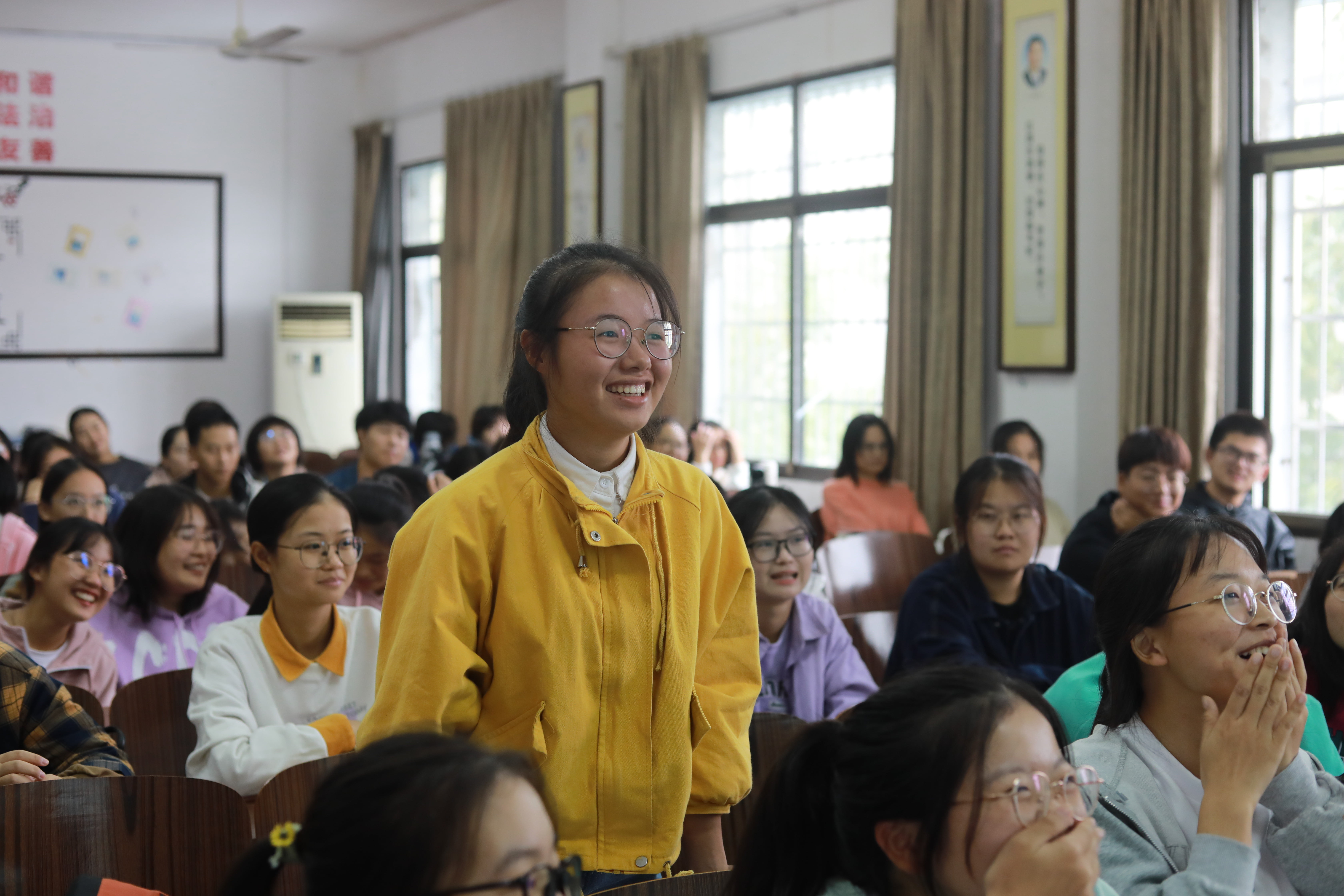 2020级和2021级分别于鹤鸣楼406、407、501教室开展班会。会议伊始,主持人介绍了本次班会主题为“呵护心灵健康,共创美好校园”。在主持人的引导下,班会有序进行,气氛热烈,同学们各抒己见,回答各种心理小问题十分积极。