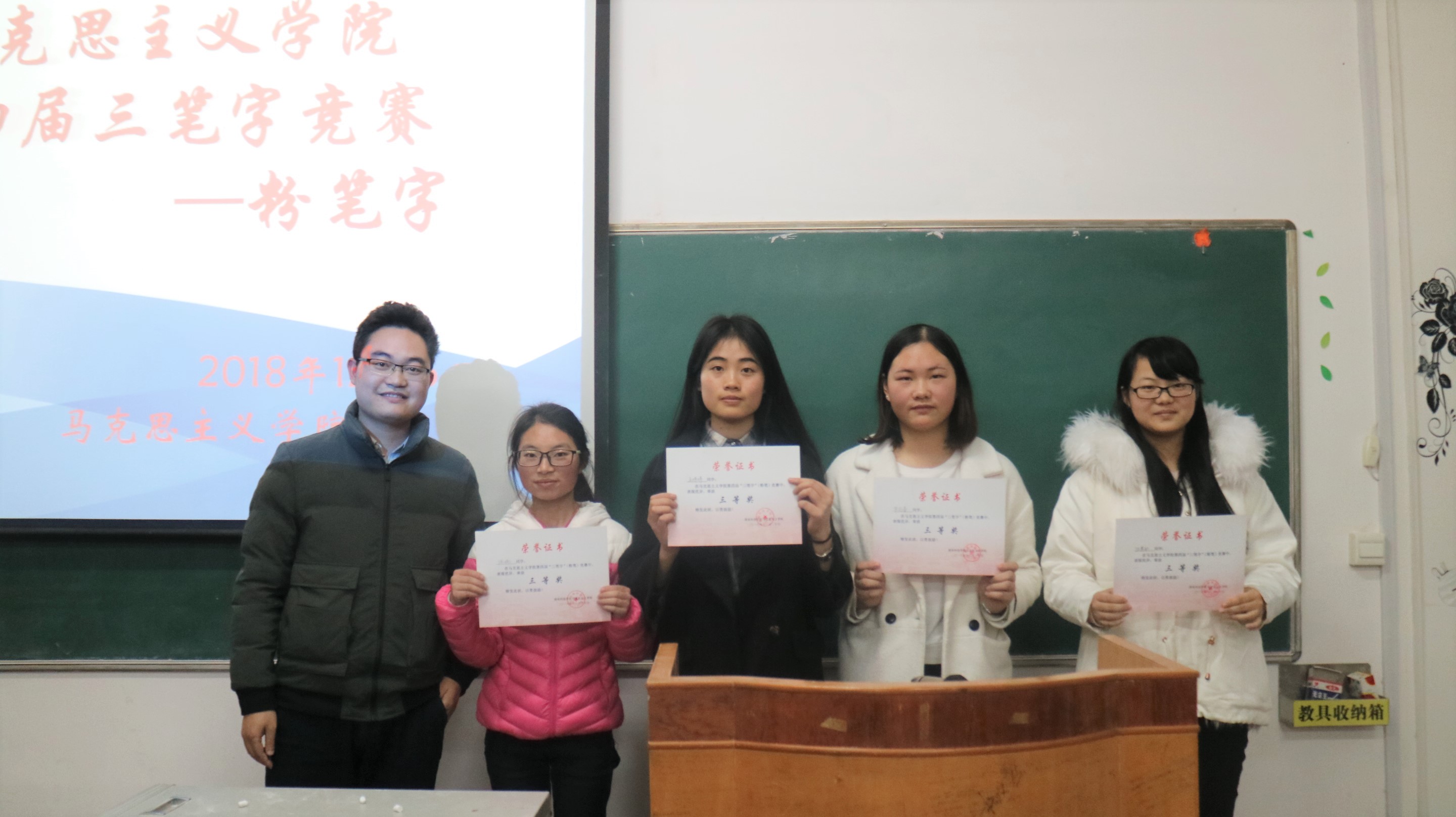 本网讯(通讯员 尹玉婷 黎雪平)为提升学生粉笔字书写能力,提高师范生的专业技能。马克思主义学院于12月6日下午在鹤鸣楼501举行第四届师范竹粉笔字比赛。我院概论教学部主任何志平、思政系主任邓怡舟及外国语学院辅导员杜俊杰老师担任本次比赛评委。