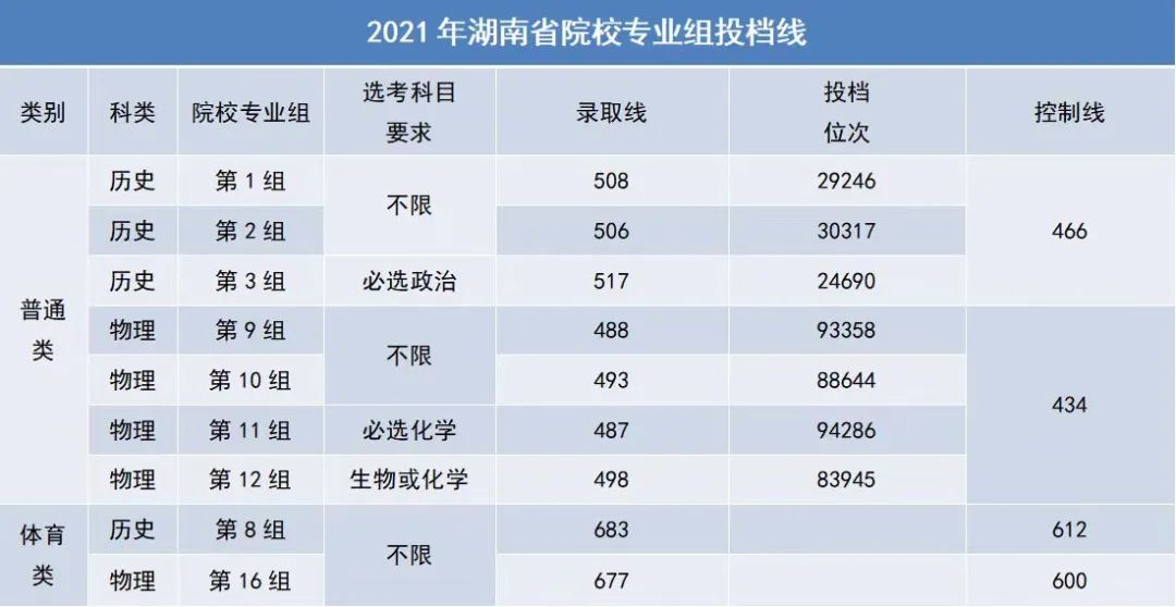 2023年湖南省本科批院校专业组计划如下