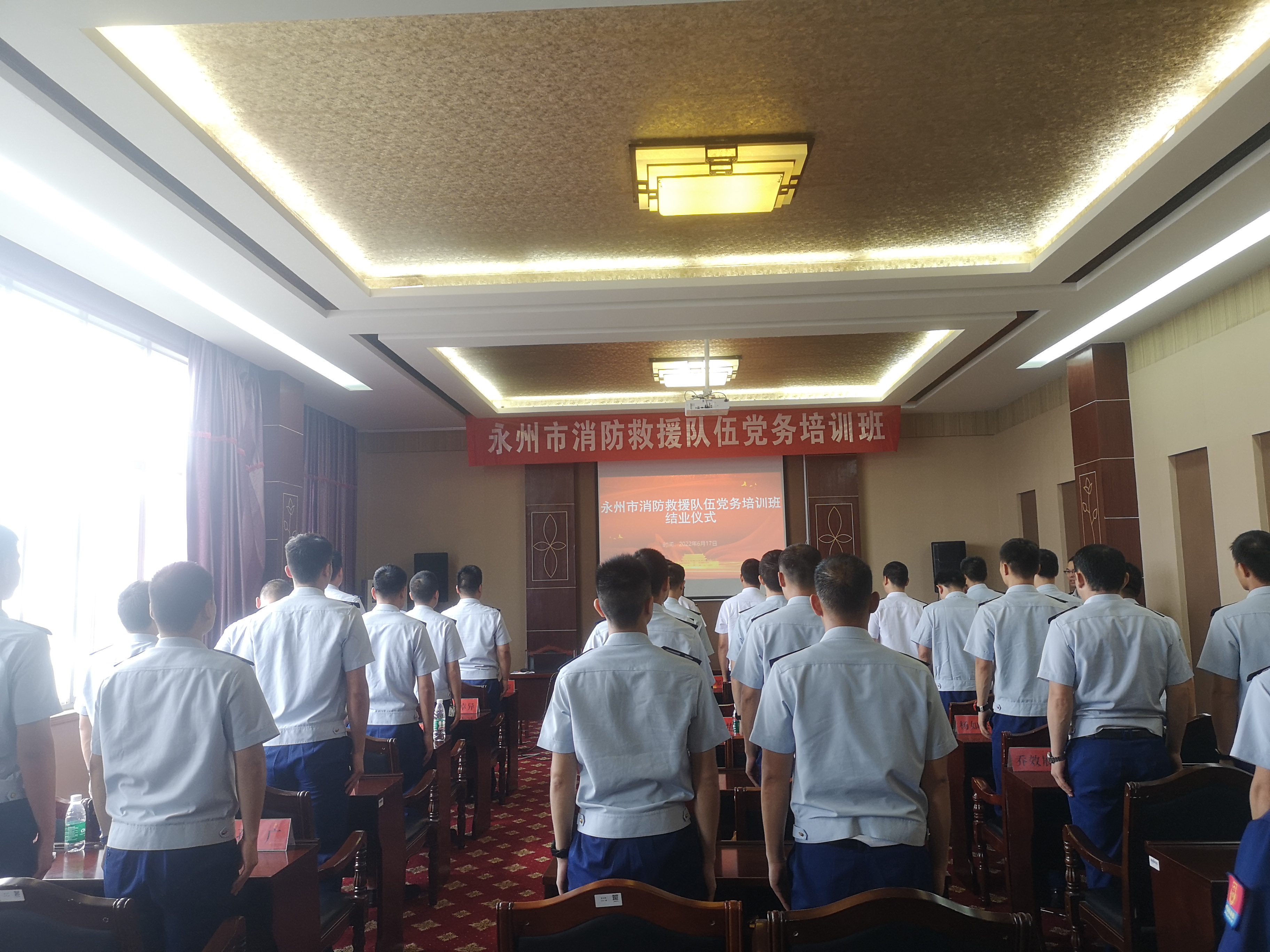 本网讯 为加强和改进基层队伍党建工作,深化全员岗位大练兵效果,提升全市消防救援队伍党务干部党建意识和开展党务工作的能力,确保全市消防救援队伍以良好面貌、优异成绩迎接二十大的顺利召开,6月13日至17日,永州市消防救援支队与世界杯官网马克思主义学院第三次合作开展的主题党建培训班圆满结束。