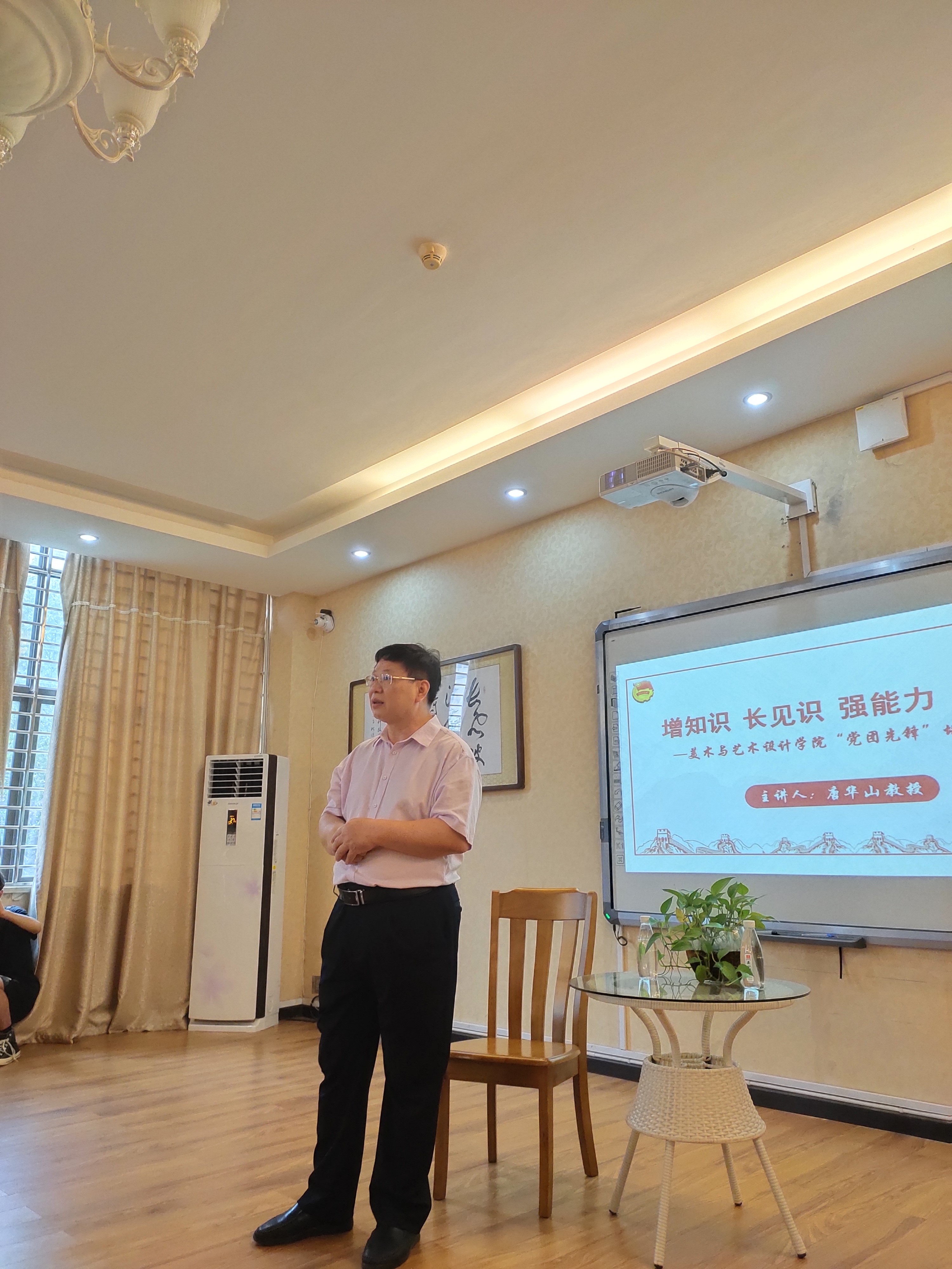 (通讯员唐忠林)6月21日下午,美术与艺术设计学院在美术楼南楼202会议室举办“党团先锋”培训交流会,学工部长唐华山教授应邀为青年学生干部做“增知识、长见识、强能力、做服务”专题讲座。学院党总支书记刘华、全体辅导员老师以及学生党员、院团委、学生会干部100余人参加,交流会由学院党总支副书记林乔军主持。