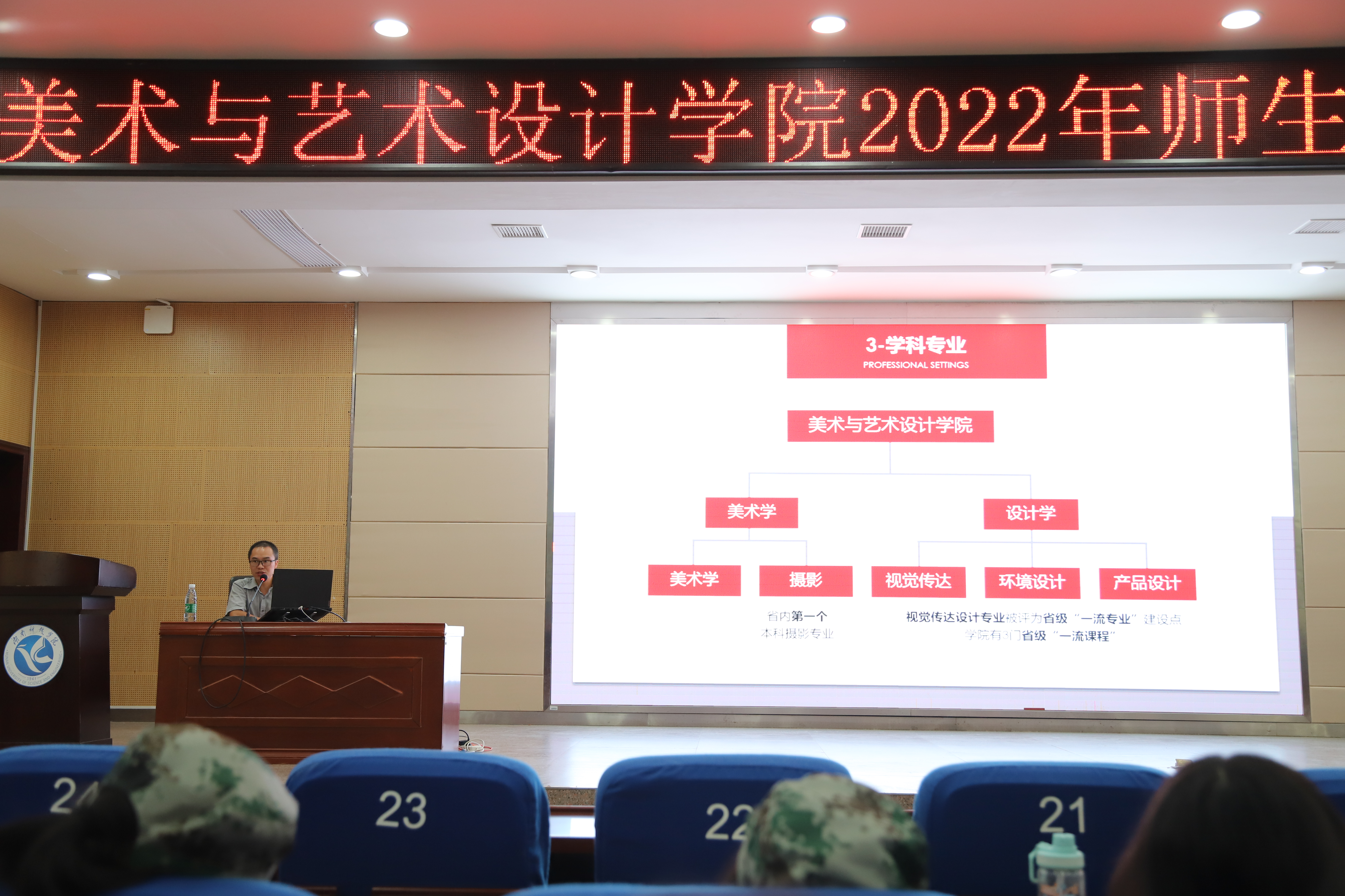 本网讯(通讯员:卿可青)9月23日晚上19点,2026世界杯官方合作网站美术与艺术设计学院在潇湘大讲堂举行2022级师生见面会暨入学教育。出席本次见面会的有院长张建利、副院长刘华、副院长柏小剑、各系系主任、各年级辅导员、2022级全体班主任。参加本次见面会的有2022级全体学生和美院团委学生会成员,本次会议由副书记林乔军主持。