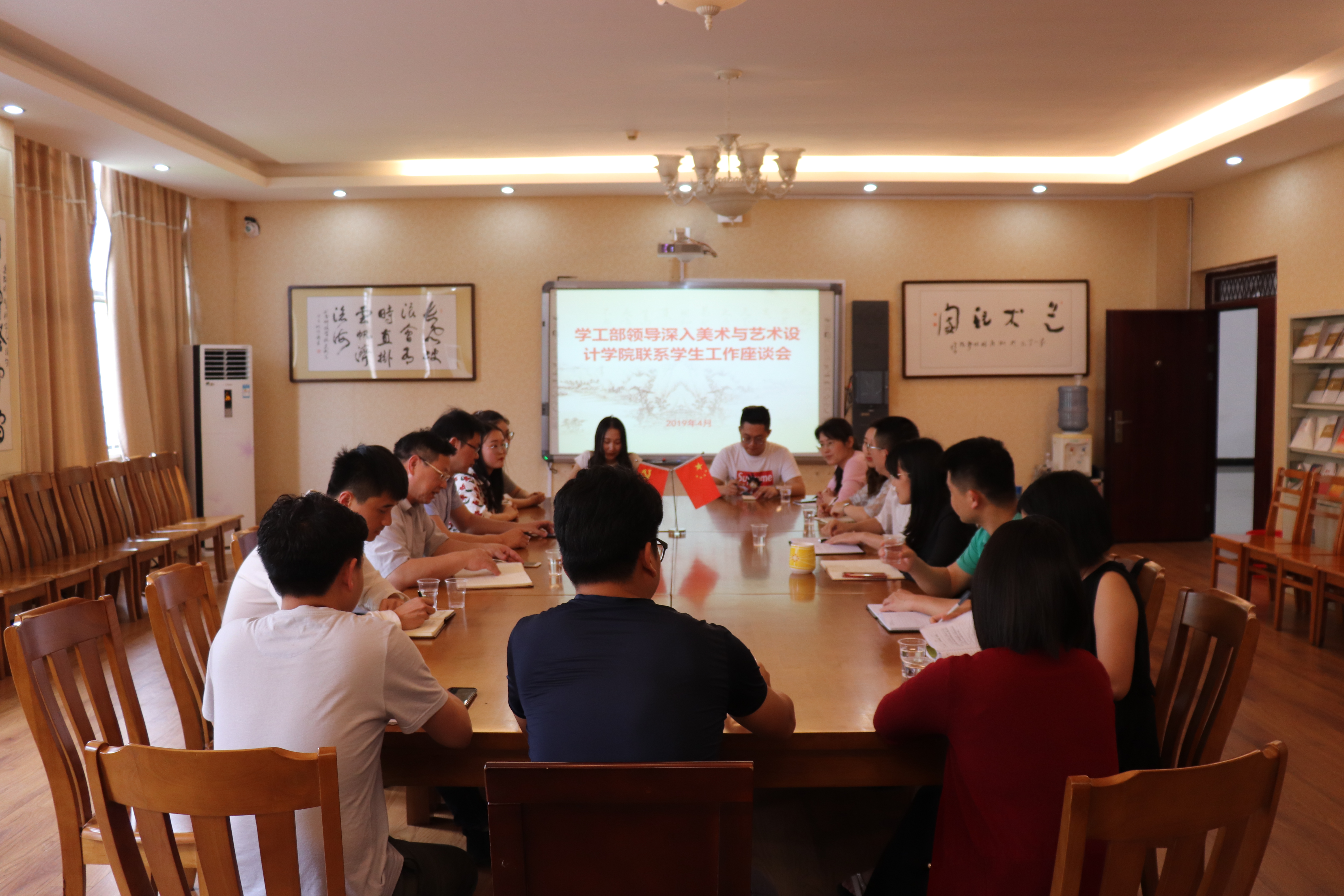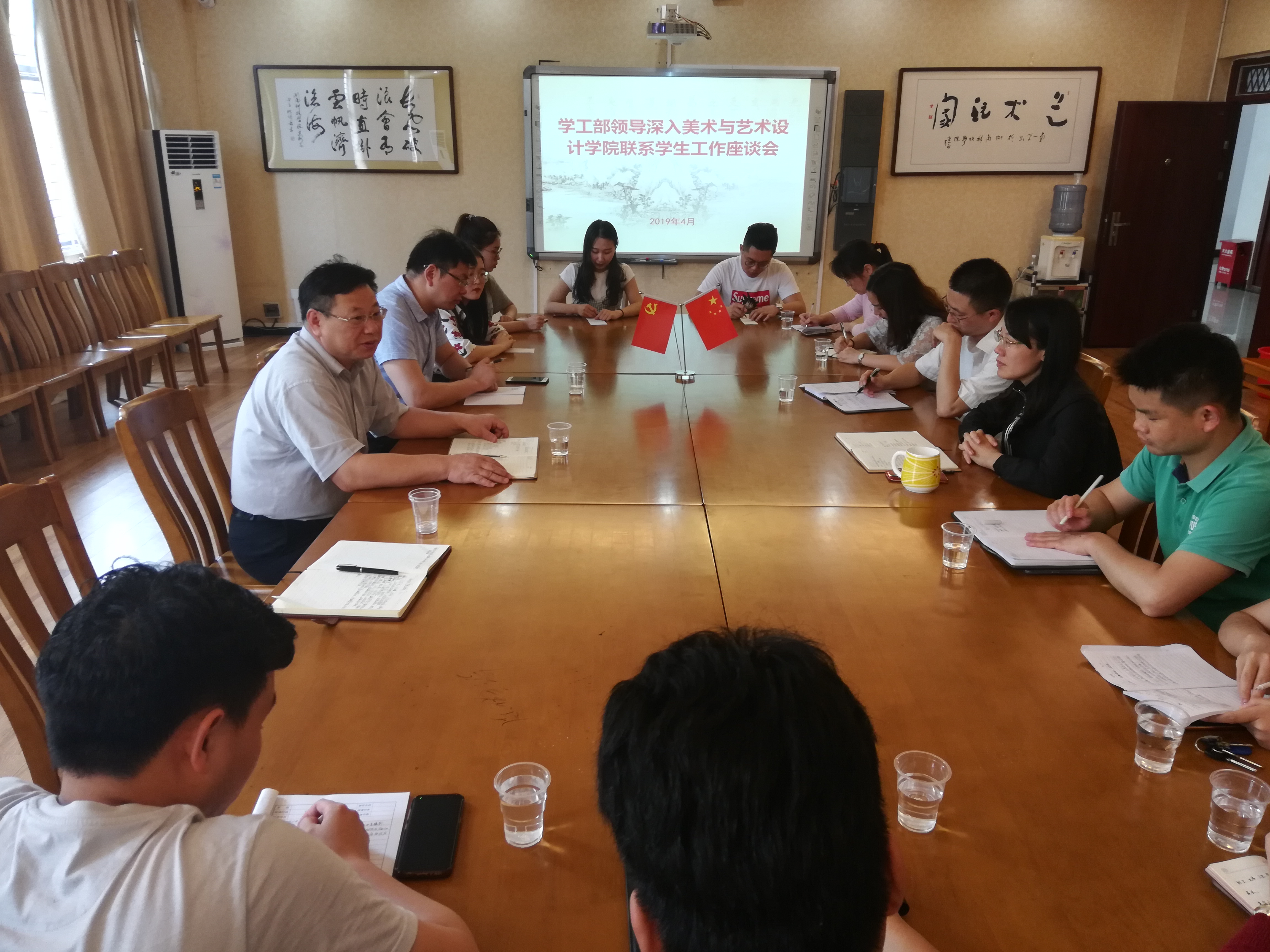 本网讯(通讯员:陈昊)4月25日下午3点,学工部部长唐华山一行深入美院联系工作。该院党总支书记刘华、辅导员、班主任、各年级学生代表参加了座谈会并进行交流。座谈会由党总支副书记林乔军主持。