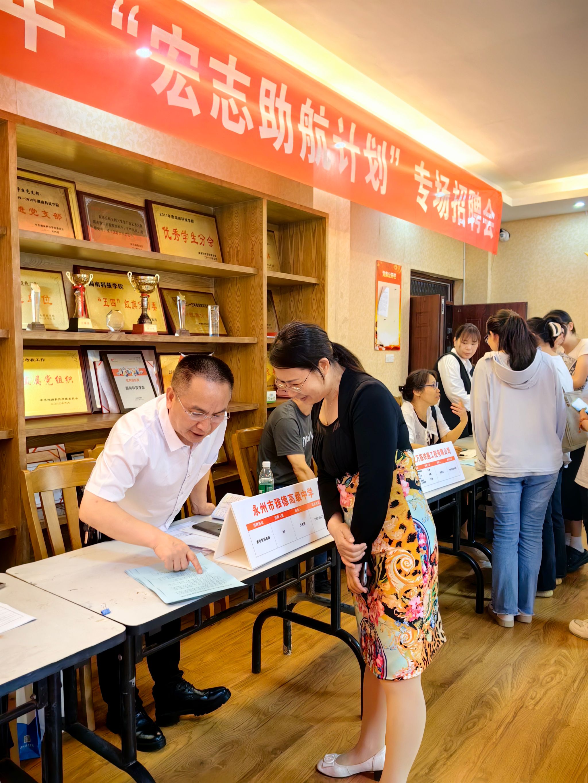 副校长郑银芳和党委委员、组织部部长杨涛与用人单位亲切交谈,详细了解企业发展情况与人才需求,介绍学校专业设置及人才培养情况,希望企业与学校在人才培养、实习就业等方面深化校企合作。鼓励毕业生抢抓“百日冲刺促就业”机遇,转变就业观念、积极留湘就业。