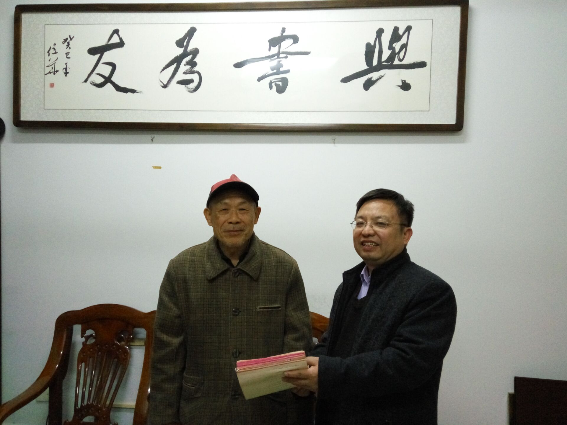 周甲辰馆长代表图书馆接受易先根先生捐献手稿