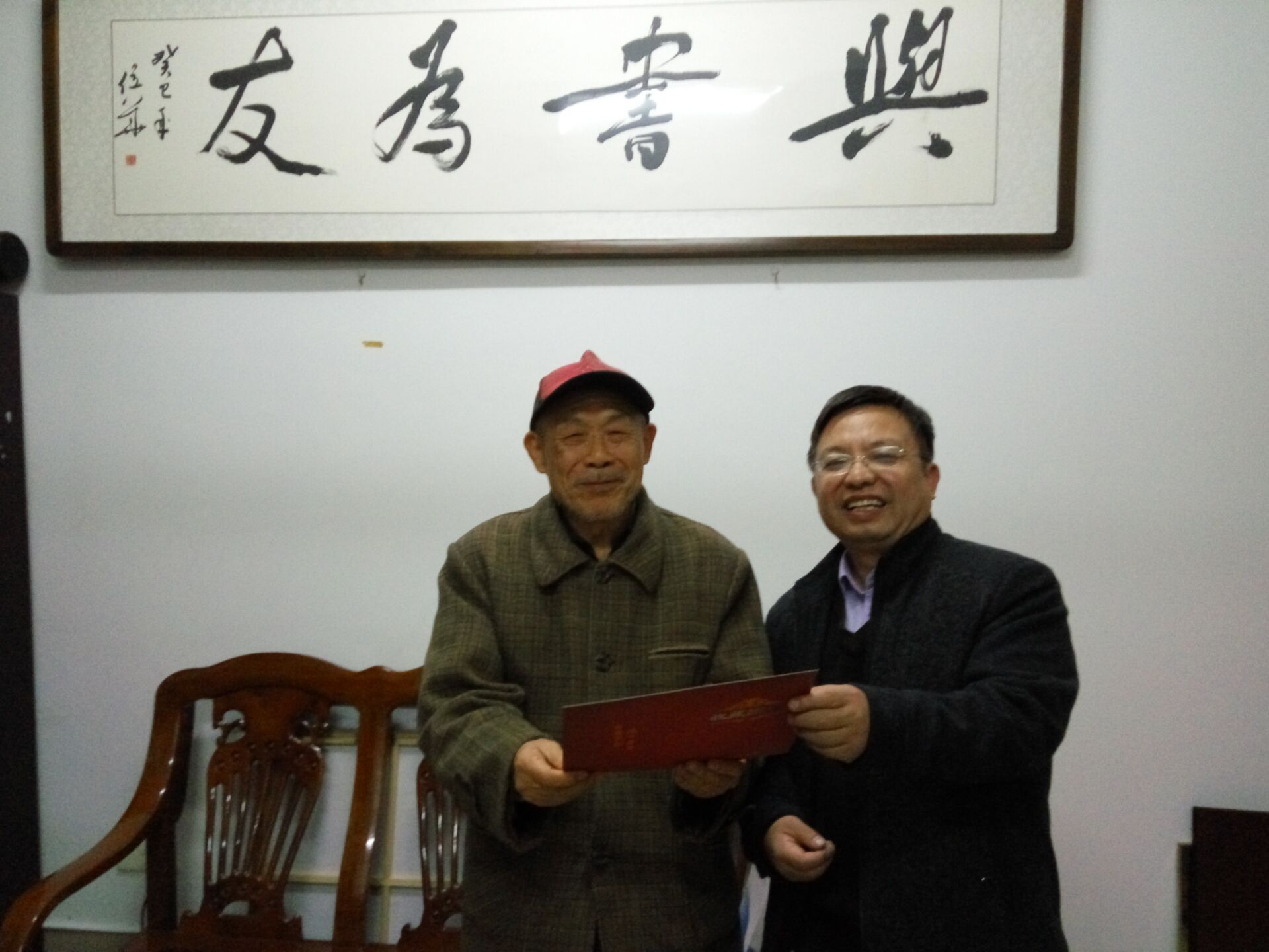 周甲辰馆长代表图书馆向易先根先生颁发收藏证书