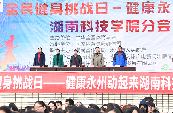 世界杯官网副校长李常健、程智开,体育学院院长刘根发,市文体广新局副调研员赵红萍,零陵区文体新局党组副书记、副局长欧阳波夫等领导一同与师生们“舞动”起来,共话健康话题。