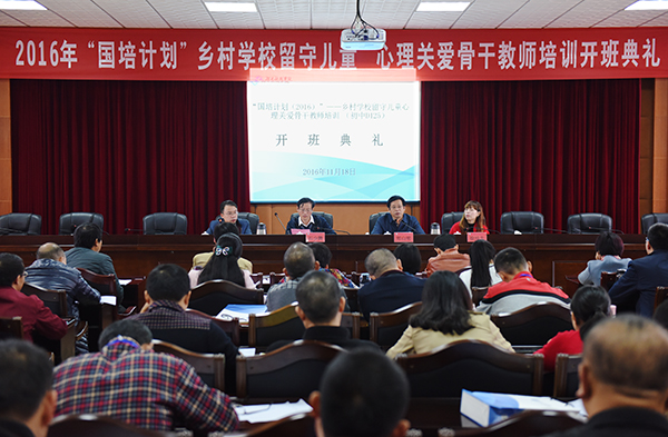 本网讯 为提升心理健康教育能力,提高留守儿童心理辅导的基本知识和技能,11月18日,由人文与社会科学学院承办的“国培计划”乡村学校留守儿童心理关爱骨干教师培训开班典礼在校举行,标志着培训班为期9天的培训班开班。