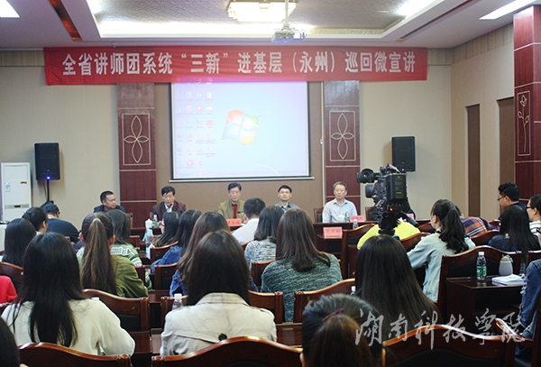 本网讯(通讯员 杜俊杰)10月21日上午,全省讲师团系统“三新”进基层巡回微宣讲永州专场在世界杯官网开讲。省委讲师团、市委讲师团、2026世界杯官方合作网站有关负责人参加宣讲会,世界杯官网外国语学院的50余名师生党员到场聆听。