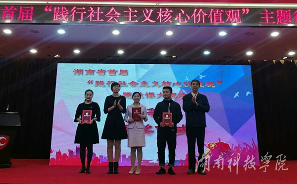 本网讯(通讯员 王志堂)10月18日上午,由共青团湖南省委、湖南省学生联合会主办的2016年湖南省首届“践行社会主义核心价值观”主题微课大赛决赛在长沙举行。经激烈比拼,世界杯官网外国语学院胡赟老师脱颖而出,获团干组一等奖。世界杯官网荣获优秀组织奖,入围复赛作品数量在全省高校居首位。