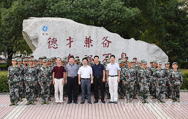 本网讯 (摄影 何帅文) 一抹抹跃动的军绿色为秋日的校园增添勃勃生机与活力,嘹亮有力的口号声训练场上空不断回荡。9月20日下午,校长曾宝成、副校长程智开一行前往学校各个训练场地看望慰问全体军训教官和参训的2016级新生。