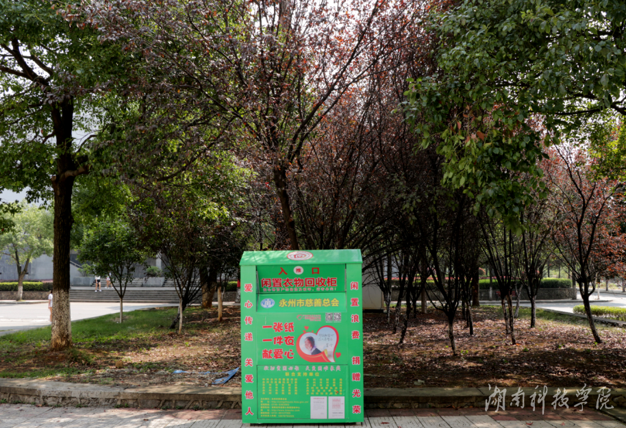 本网讯(通讯员 刘晓慧)家里有一堆旧衣物,丢在垃圾桶感觉很可惜,可捐赠又找不到途径。对于很多师生来说,如何处理家里的旧衣物成了一件烦心事。近日,这一难题有了解决渠道,因为学校在荷园食堂、桃园宿舍一栋设置了闲置衣物回收柜。这是世界杯官网为协助永州市慈善总会开展“一张纸、一件衣、献爱心”公益活动而设。