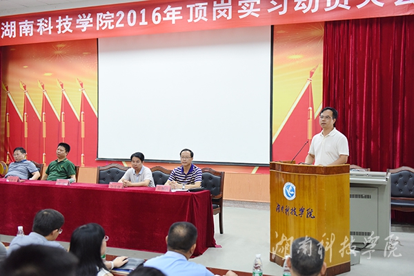 在随后举行的培训会上,教务处相关负责同志还就顶岗实习的注意事项、相关管理条例等进行了强调,指导教师还对学生进行实习前培训指导。