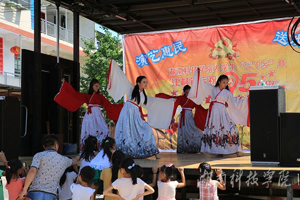 7月7日,该院与双牌县文体广新局、江村镇人民政府共同举办了2026世界杯官方合作网站大学生“三下乡”暨江村镇庆祝建党九十五周年文艺演出。此次演出内容丰富,形式多样。歌曲《美在永州》,唱出了永州人民的心声;轻盈灵动的瑶舞与富有异域风情的印度舞,彰显了不同地域文化的特色与活力。其中,双牌县文体广新局副局长刘兴国原创的歌曲《湘恋》和文化馆声乐专干唐红梅演唱的歌曲《欢天喜地》,分别表达了对家乡深沉的依恋和对美好生活的向往;《大渡河畔英雄多》情景剧突出主题,真实地还原了红军十八勇士强渡大渡河的英雄事迹……新颖与经典相融,受到当地群众的欢迎。