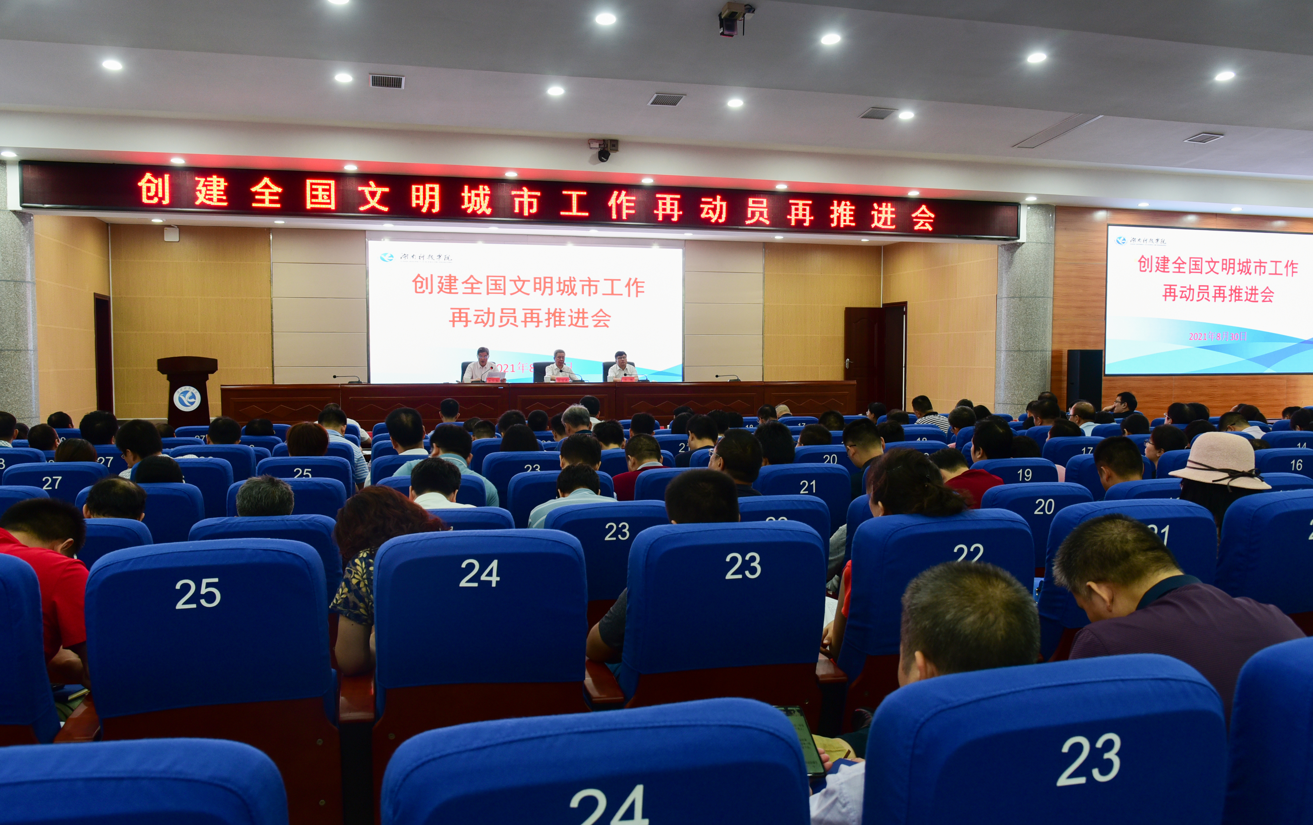 本网讯 8月30日上午,学校举行创建全国文明城市工作再动员再推进会,持续深化学校文明创建工作。会议由党委副书记宋宏福主持,全体校领导及中层干部参加。