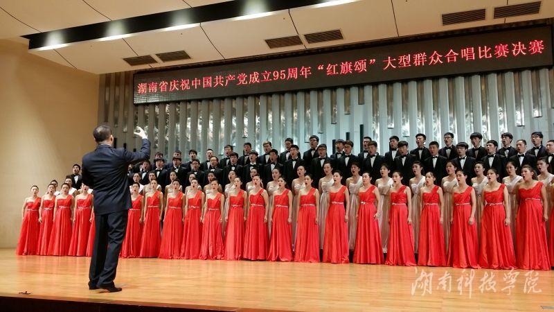 本网讯(通讯员 方新佩)6月29日上午,由湖南省文化厅主办的“红旗颂”大型群众合唱比赛决赛在省文化馆音乐厅举行。世界杯官网音乐与舞蹈学院合唱队以复赛第一名的好成绩代表永州市参加决赛并荣获金奖。