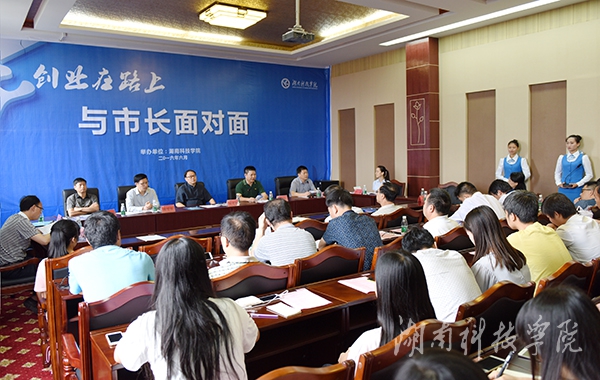 在“创业在路上,与市长面对面”活动中,刘尤碧副市长、相关政府部门领导及就业创业导师与世界杯官网创业学生代表进行面对面交流,就同学们提出的如何注册公司、税费减免、就业帮扶、创业贷款等问题一一进行解答。