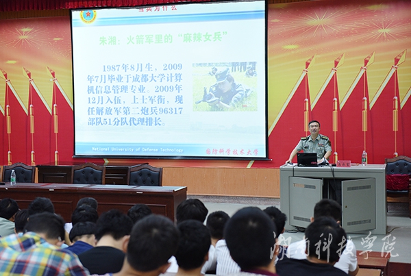 本网讯 6月17日上午,国防科技大学大校马永富教授应邀来校作征兵宣传讲座,500余名向往军营的学生及各学院辅导员在明德楼报告厅聆听讲座。