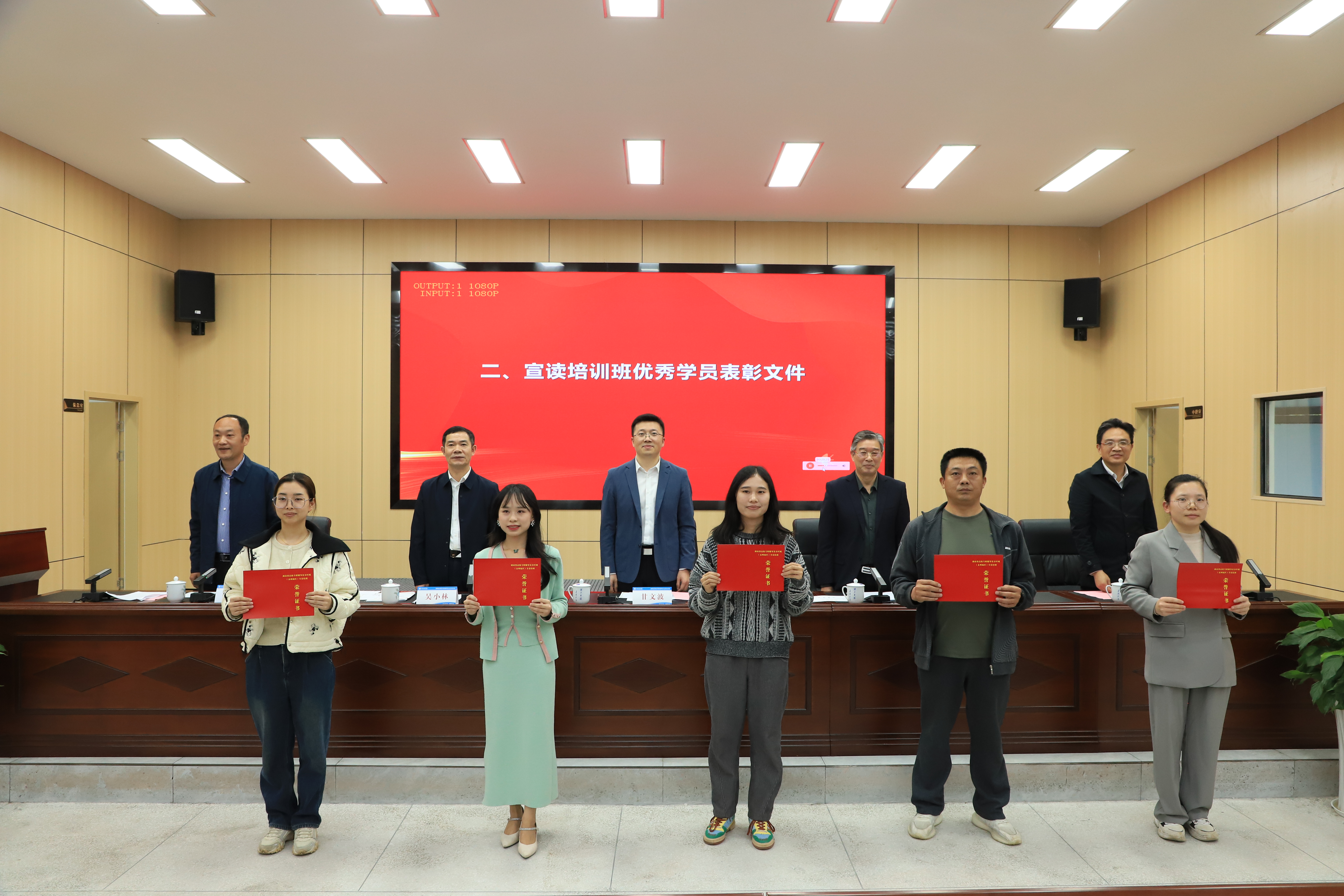 杨涛宣读培训班优秀学员表彰文件,全体领导为优秀学员颁发了荣誉证书。