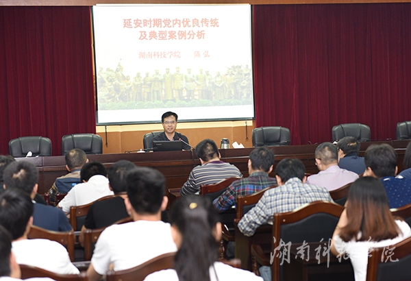 陈弘以《发扬延安时期党内优良传统》为主题,引经据典,结合实例,从延安时期党内优良传统的培育形成、坚持民主集中制、维护党的团结和纪律、正确开展批评与自我批评、领导者的表率示范等方面进行了详细解读。他指出,延安时期,我们党对加强自身建设进行了理论和实践双重探索,取得了有益的理论成果、实践成果和制度成果,从延安时期党内优良传统中,追寻历史轨迹,探究丰富内涵,阐释时代价值,吸取智慧力量,是全体共产党员的政治责任。陈弘旁征博引、妙语连珠,现场多次响起热烈的掌声。