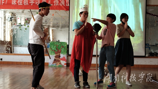 课堂上,饰演《白雪公主》的演员们穿上新颖的服装配上趣味的道具,将剧本故事情节展现得淋漓尽致。《卖火柴的小女孩》融入新元素和独特的开场白将活动推向高潮,现场师生不时响起阵阵掌声。