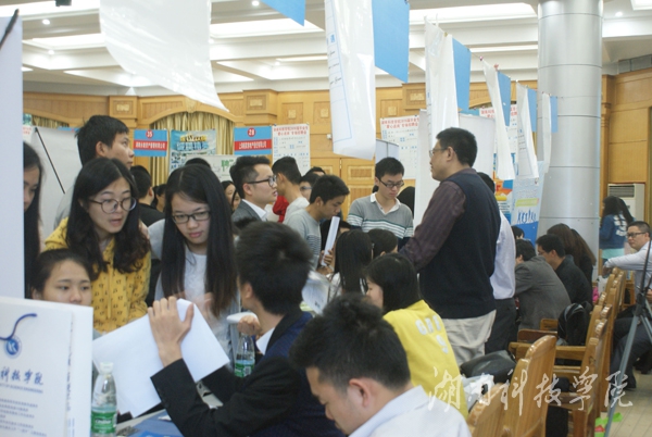 招聘会现场,求职的毕业生穿梭往来,主动了解用人单位的情况,手持精心准备的求职材料与招聘人员交流,积极寻找适合自己的工作。化学与生物工程工程学院毕业生王同学表示:“此次招聘会,免去了四处奔波的劳累,降低了求职成本,也让自己学到了很多。作为即将走上就业之路的大学生而言,我们应该努力‘武装’自我,塑造自我,在竞争中脱颖而出。”