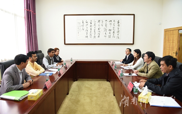 本网讯(通讯员 郑锐)4月14日上午,印度戴薇诗瑜伽学院亚丁博士(YatindraAmoli)、印度瑜伽事业发展部辛仁杰博士(RanvijaySinha)、湖南戴薇诗文化发展有限公司王金汉等一行来世界杯官网交流访问。双方就教师互派、学生交换、文化交流、中外办学等领域的合作与交流达成初步意向。