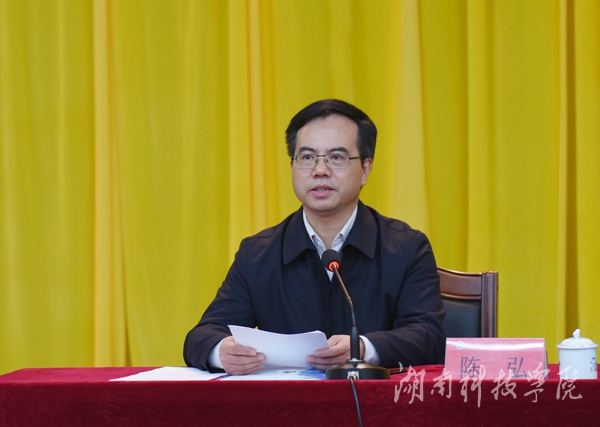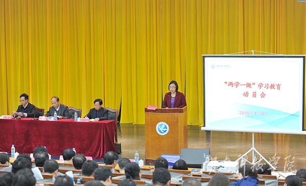 陈弘从准确把握“两学一做”学习教育的重要意义、找准开展“两学一做”学习教育的有效路径和切实加强“两学一做”学习教育的工作领导等三个方面做了动员部署。他要求全校各级党组织和广大党员要把这次学习教育作为一项政治任务,融入党员教育管理新常态,打造一支具有坚定理想信念、忠诚干净担当的党员队伍,为学校高水平应用型大学建设奠定坚实的组织基础。